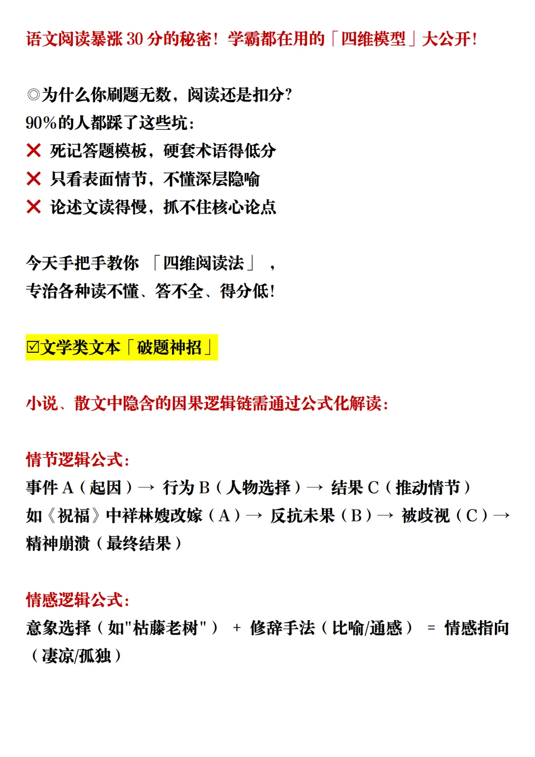 小说、散文中隐含的因果逻辑链需通过公式化解读: