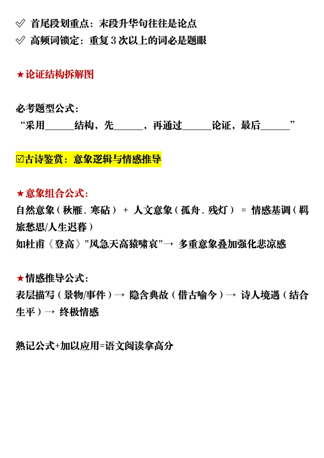 ✅ 首尾段划重点:末段升华句往往是论点