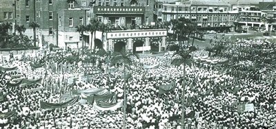 光复之初,台湾民众对于挣脱日本殖民主义统治、回归祖国,普遍怀有强烈的期待和兴奋之情。日本宣布投降后,台湾内部迎接回归祖国的力量迅速出现,尚以日文出版的《台湾新报》介绍了“三民主义青年团”组织在台湾的发展情况,指出这是大变革时代“政治上黎明的象征”。1945年9月,林献堂、辜振甫等人作为台湾代表参加受降典礼,虽因故错失亲身参加在南京的受降典礼,但代表团仍受到礼遇,回台后林献堂应邀作了访问感想,演讲要旨以《祖国不忘省民》为题刊载于《台湾新报》。