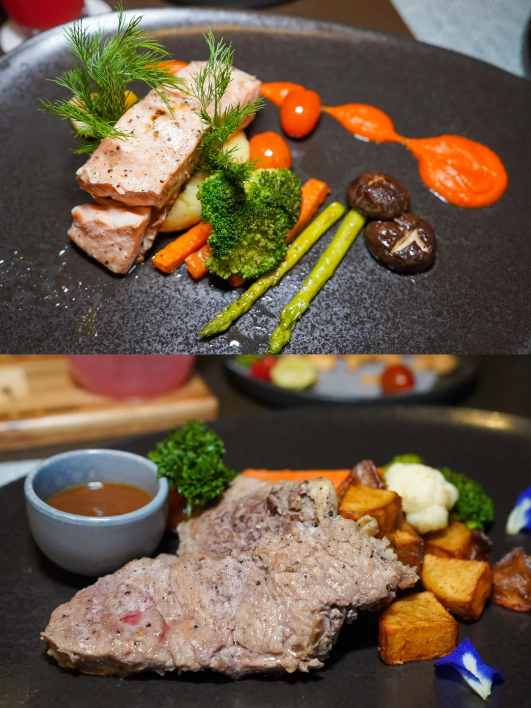 这家的三文鱼排和牛排都不错,三文鱼肉煎得很嫩,推荐。