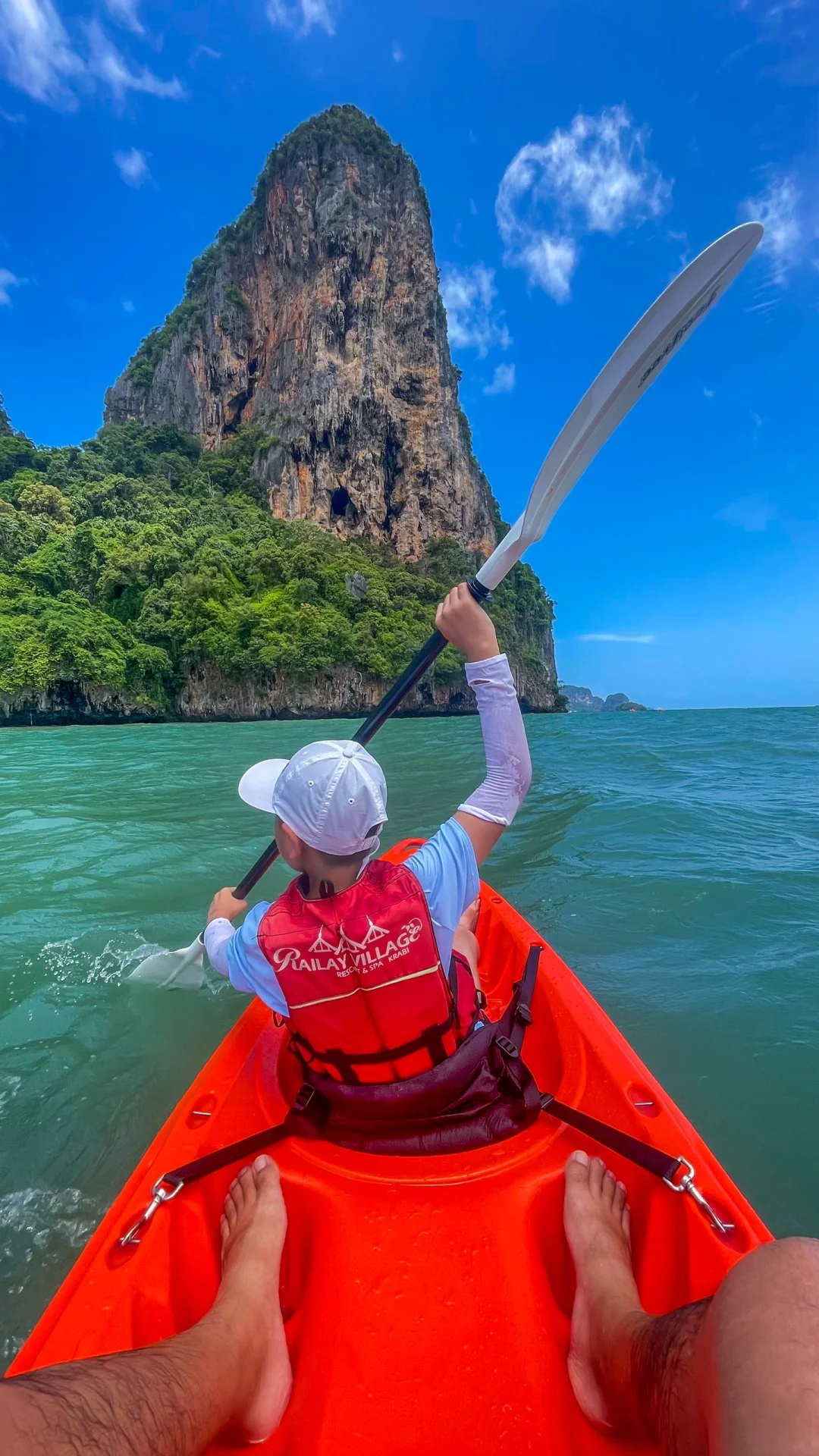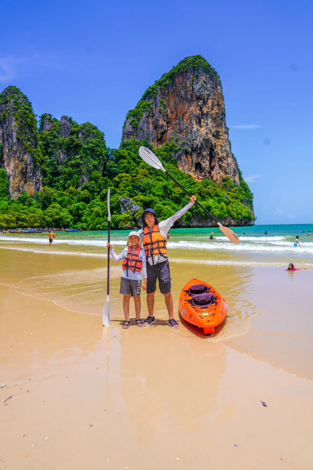 莱利海滩这是奥南镇必做的旅行项目之一,坐船只需20分钟就可以到达,可以体验浮潜,游泳,攀崖等项目。我们选择皮划艇,这让我们近距离欣赏到了壮观的海上喀斯特悬崖景观。