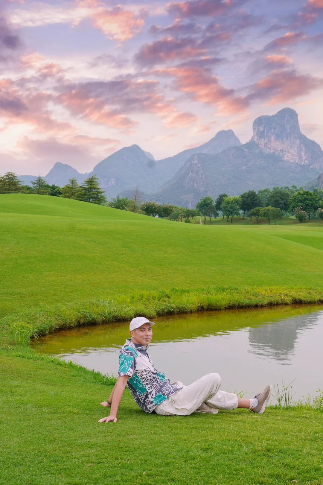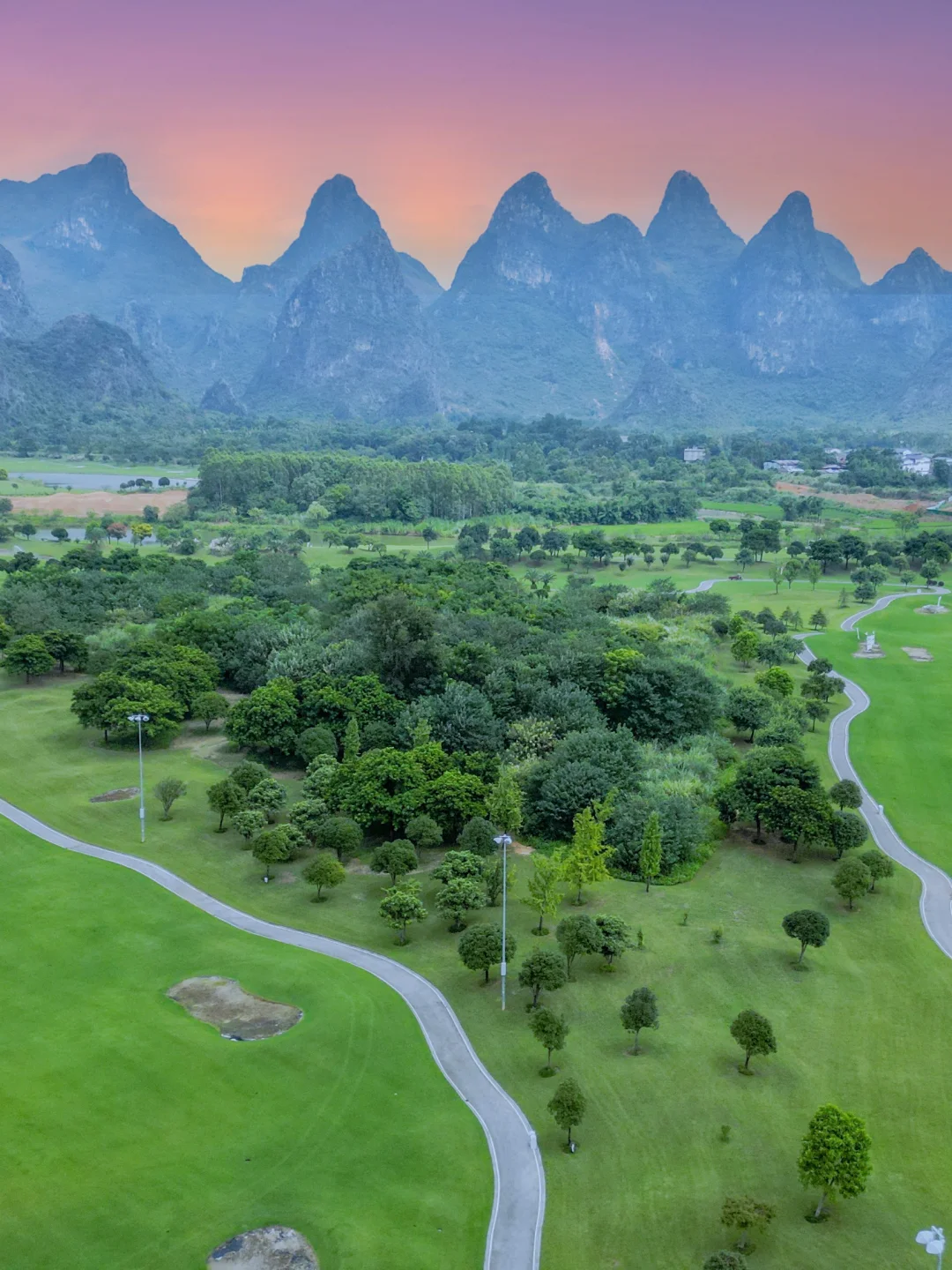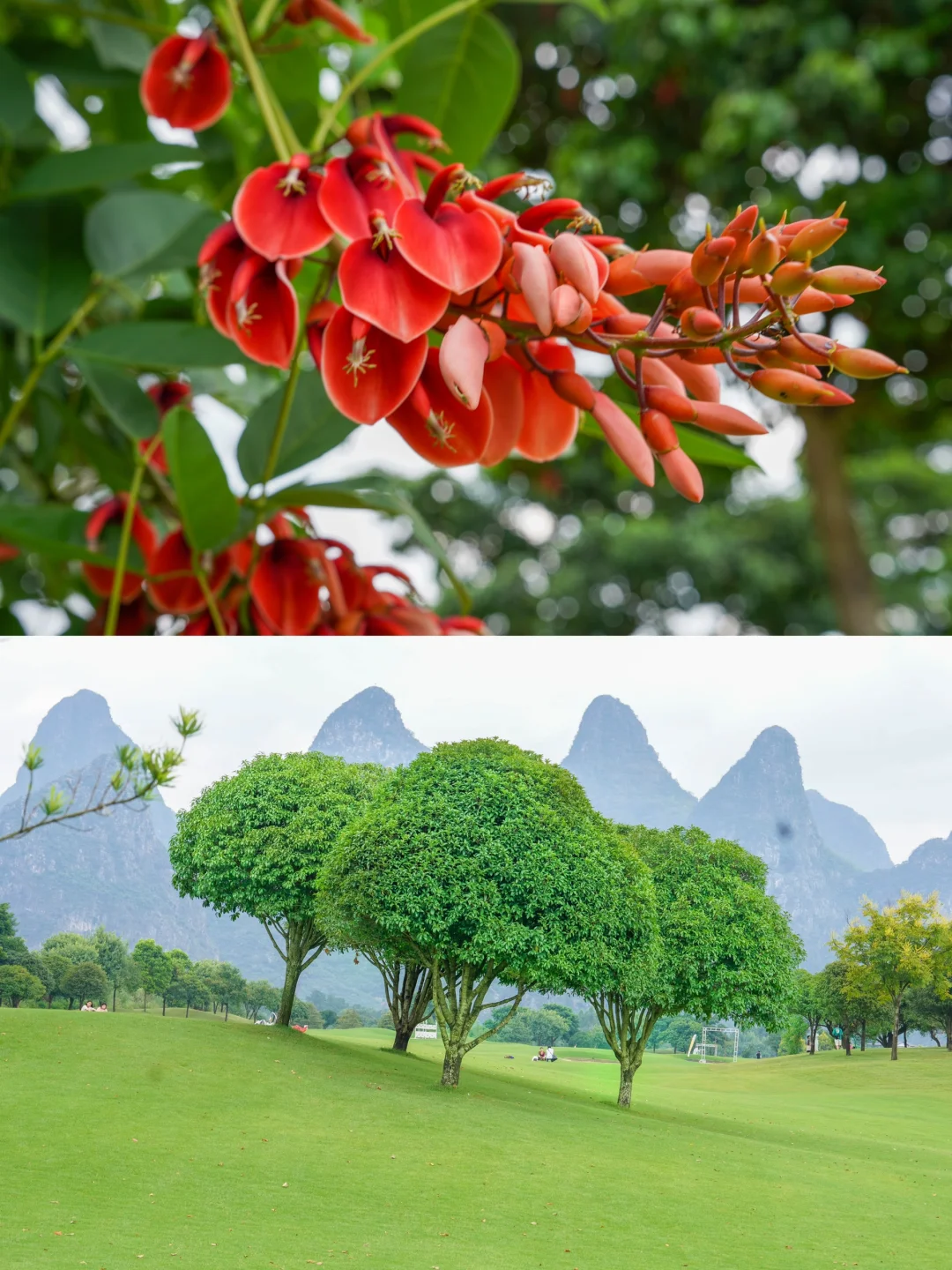 桂林小众景点,山峰环抱的桂海晴岚,超适合打卡拍照\n晴岚源于有桂林“老八景之首”之称的“桂海晴岚”:\n“雨后初晴,岚光紫雾,飘缈其间,犹似仙境。”\n可谓桂海,地理上所从桂林延绵至灵川之间的峰丛林,称为“桂海”。\n这次《桂林人文风物自驾逍遥游》,首站为“桂海晴岚”,我刚下车,就被眼前的壮观景色所震撼。\n只见绿油油的大草坪有些类似高低起伏的波浪线条,远处为山峦叠嶂,群峰环抱的大自然景色,正所谓:“桂林最美不过漓江水,最秀不过峰林山”,\n这种峰丛与峰林相互交织,而形成的喀斯特地貌为广西最壮美一道风景线。\n桂林之山的妙处在于,她与中国传统文人审美不谋而合,峰丛和峰林是广西最经典的喀斯特地貌形态,而桂林就是峰丛和峰林景观的代表。\n🍁徒步探索天然画廊\n在游客中心听完导游讲解后,准备开始我的徒步探险。\n我沿着指示牌指引的小径前行,穿过一大片草坪后,来到了著名的\"天然画廊\"。\n这个地方的美不容忽视。\n巍峨的山峰倒映在碧绿的湖水中,如同一幅幅令人叹为观止的山水画。\n我沿着湖畔小路徜徉,不时驻足观赏,拍照留念。\n在这里,时间仿佛静止,只有大自然的声音和微风的拂过。\n☀️玩法:\n桂海晴岚现在已建成山水美学生活馆、国际露营基地、热气球、水上运动、全地形越野车等旅游项目,下面列举这个好玩的跟大家分享:\n🪴一、桂海晴岚因为有大草坪,很适合单位团建之类的户外拓展活动体验,他设有许多的冲卡关卡,喜欢运动的可以挑战一下。\n🍃二、拍照打卡,景区内植物的种类很多,像棕榈树等一些珍稀的热带植物都有,植物是拍照很好的参照物,以它为取景可以拍出一些与众不同的美照。\n🌱三、户外水上项目,可以报名皮划艇体验,坐在皮艇上,伴随着悠缓的水流,穿越了一片又一片的湖泊。\n水面倒映出了蓝天白云和远处的峰丛,让人感到仿佛在一个梦幻般的世界中漂游。\n🌵旅游小贴士:\n桂海晴岚离桂林市区非常近,才半小时车程,特别是周末自驾;\n当然,桂海晴岚无论是草坪、湖泊还是清新的空气,都容易让我们这些居久都市的人,洗涤心灵,旅行后会感到宁静与满足。从而让更加珍惜大自然的奇迹和广西的自然美。\n