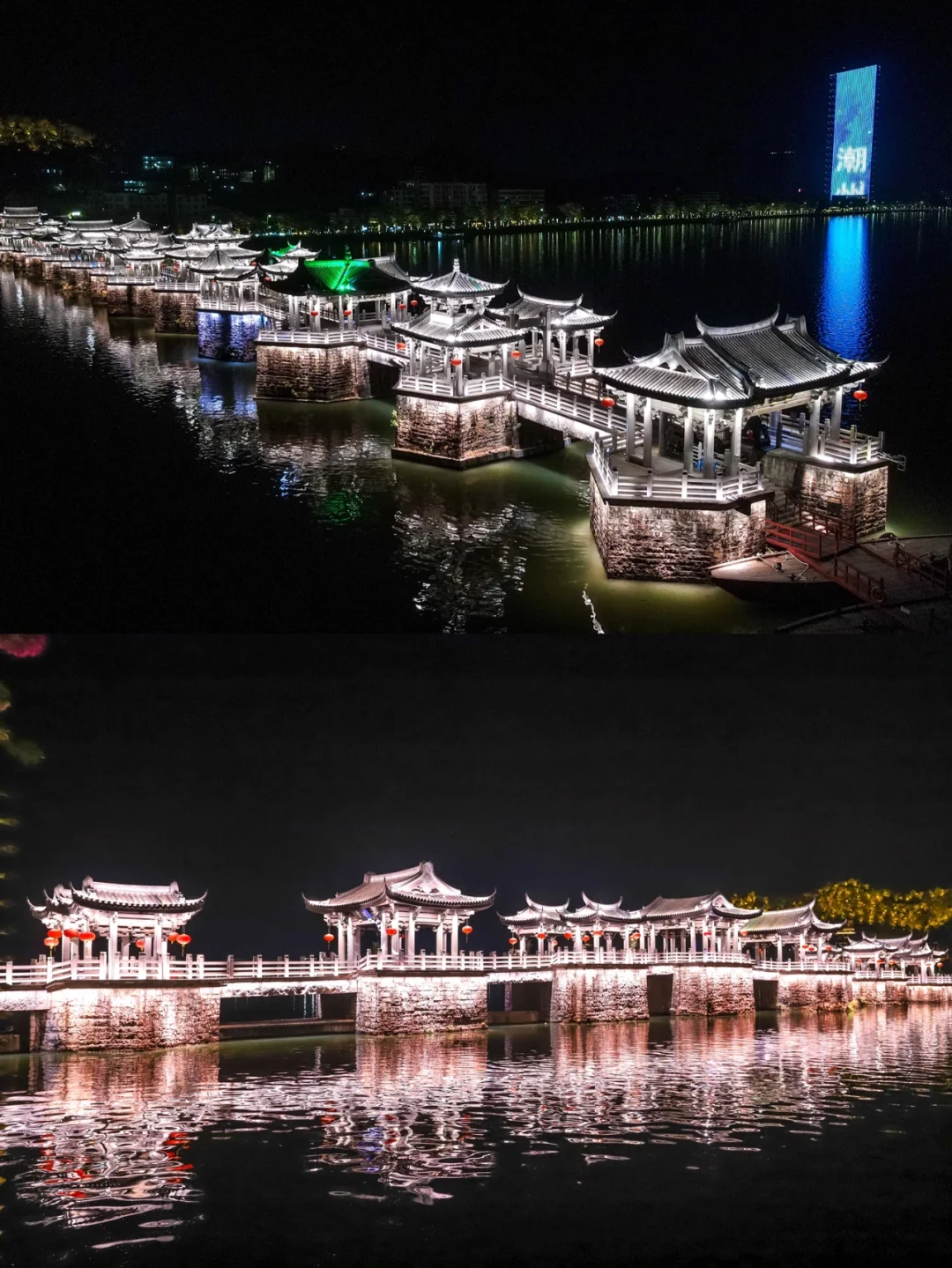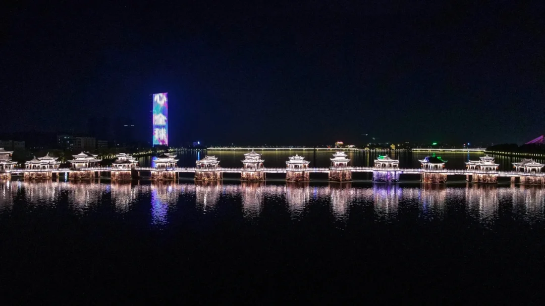 广济桥,又称湘子桥,横卧在潮州城东门外滚滚的韩江之上。昨晚,看到亮灯的广济桥,它和潮州古城的夜景,都非常漂亮。推荐你们一定要来看看。