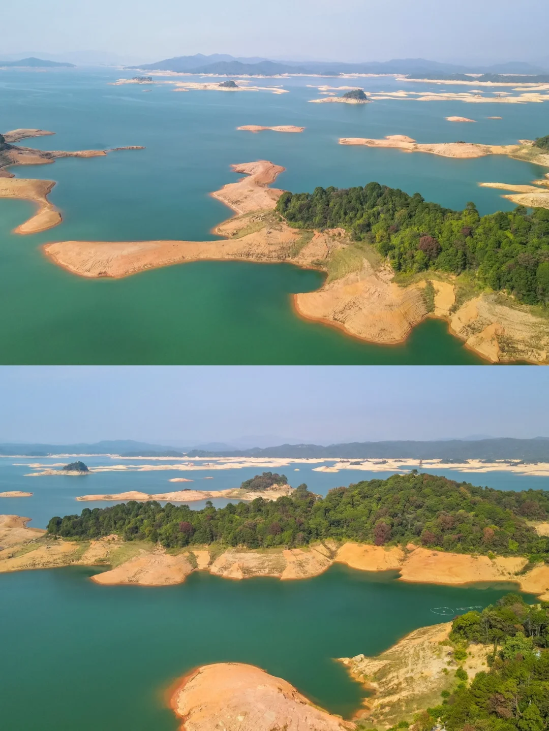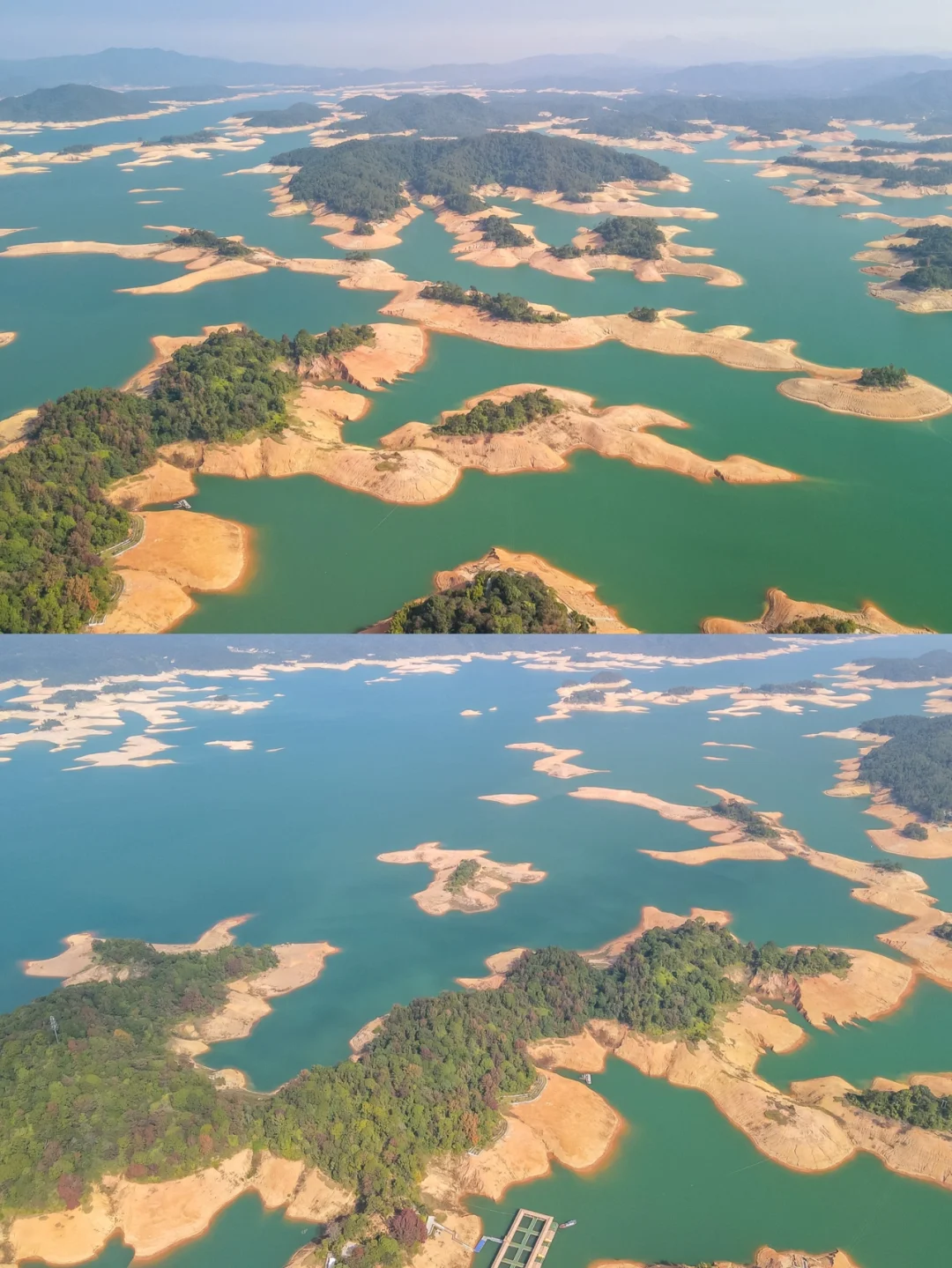 “天上瑶池水,人间万绿湖。”河源万绿湖,作为华南第一湖,浩渺碧水,湖内有360多个小岛屿,登上龙凤岛状元塔,俯瞰四周山峦层叠,碧波万顷。湖光山色太美了!
