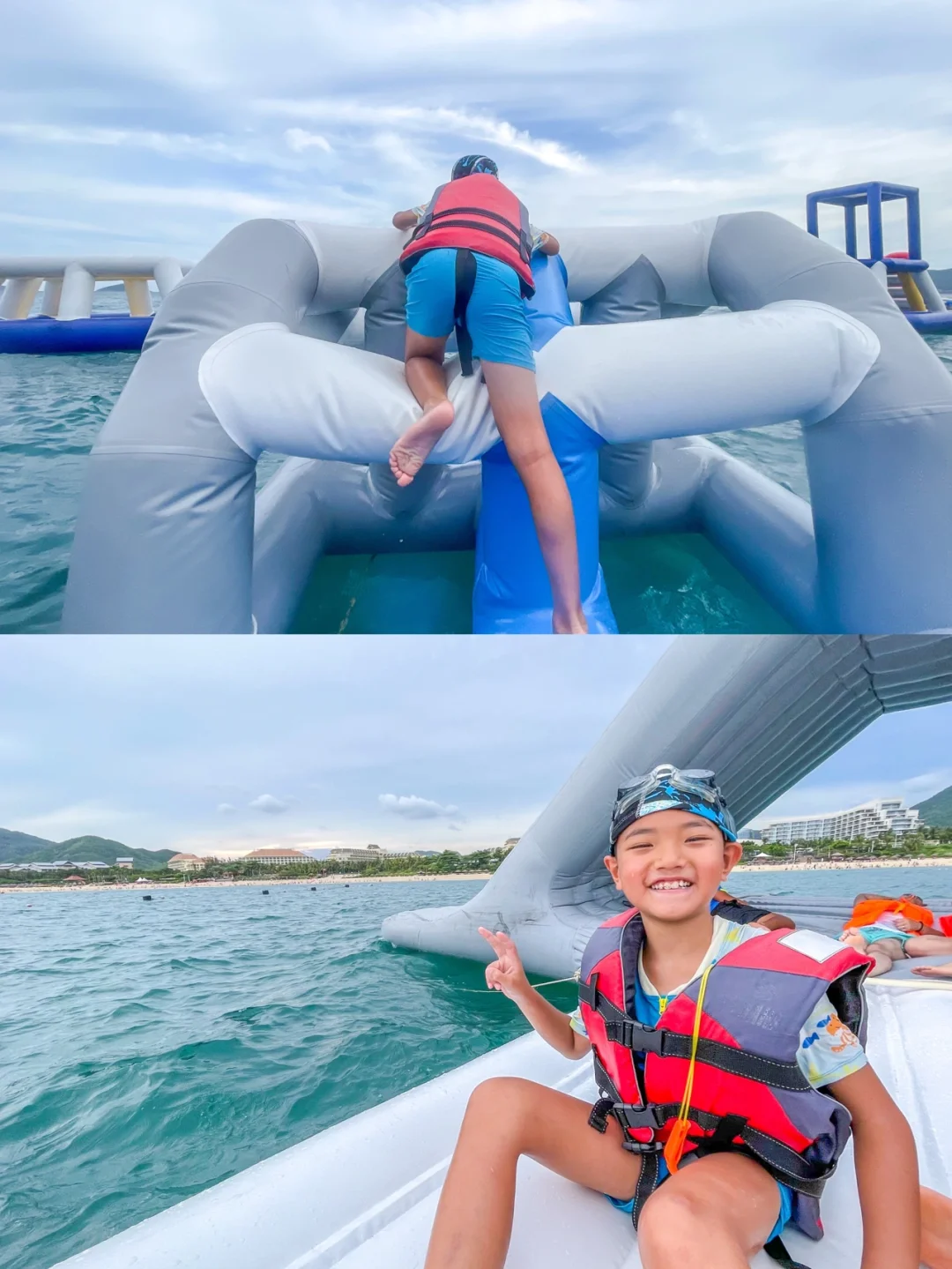 海上城堡不用担心掉海的问题,非常安全。一切跟着教练安排来体验就可以了。每个人身上都穿有救生衣,掉水后,也马上有教练帮忙,重新回到城堡里。