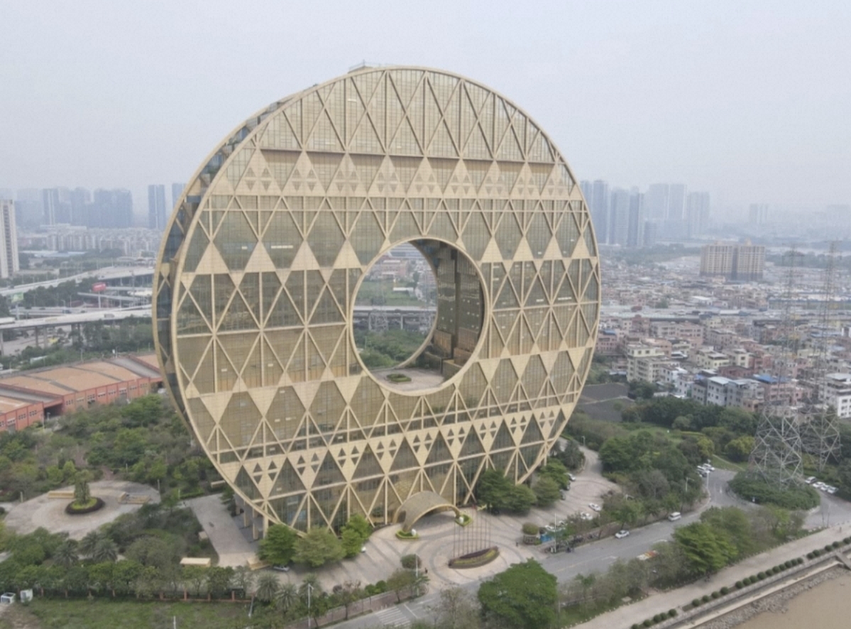 广州圆大厦,通体金色,形似铜币,民间俗称“铜钱大厦”,其建筑审美风格及大厦名称的粤语发音,在当地备受争议,还曾被网民冠以“最丑建筑”。公开资料显示,该大厦总投资为10亿元。
