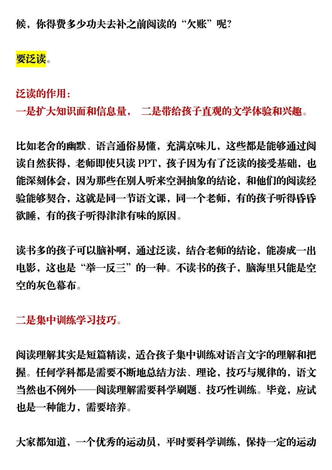 小学阶段一定要抓阅读、抓阅读、抓阅读!!!小学课本的单一性,远远不能满足一个孩子的大脑成长的需求。只有博览群书、海量阅读,广泛涉猎百科常识书籍,才可以让孩子的智慧不断成长,最终形成一种强大的发展能力。