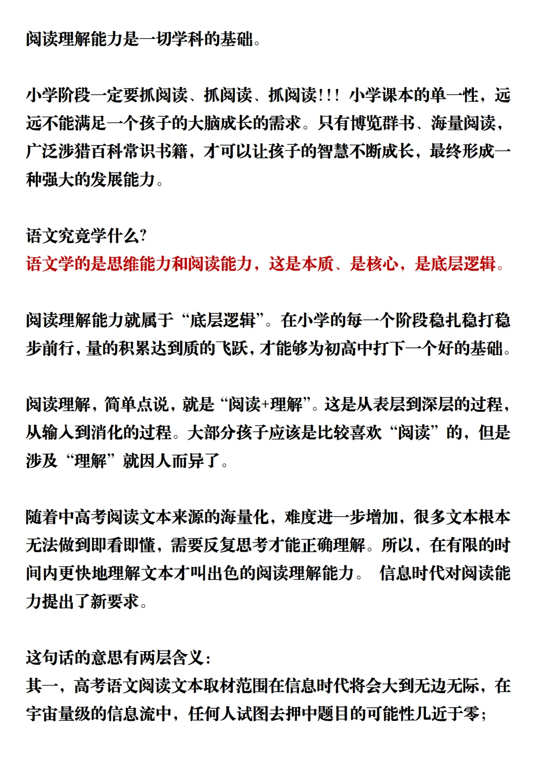 语文学的是思维能力和阅读能力,这是本质、是核心,是底层逻辑。