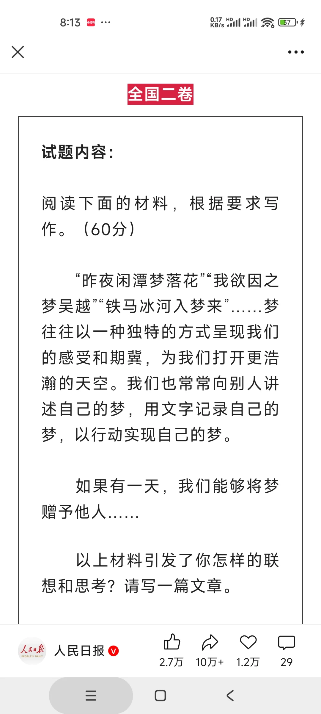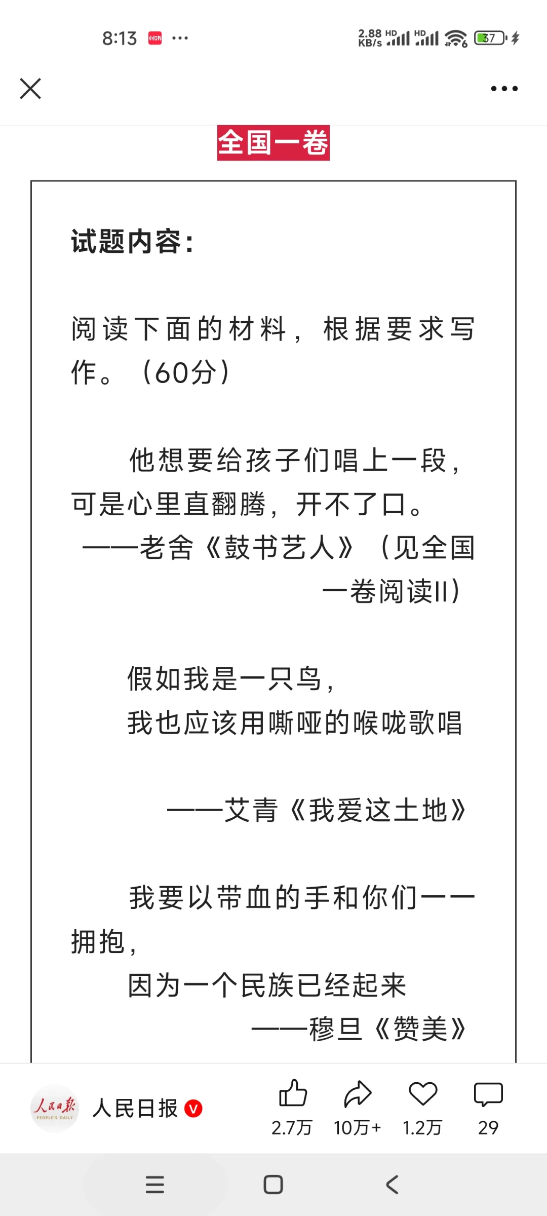 2025高考作文 全国Ⅰ卷的家国情怀主题