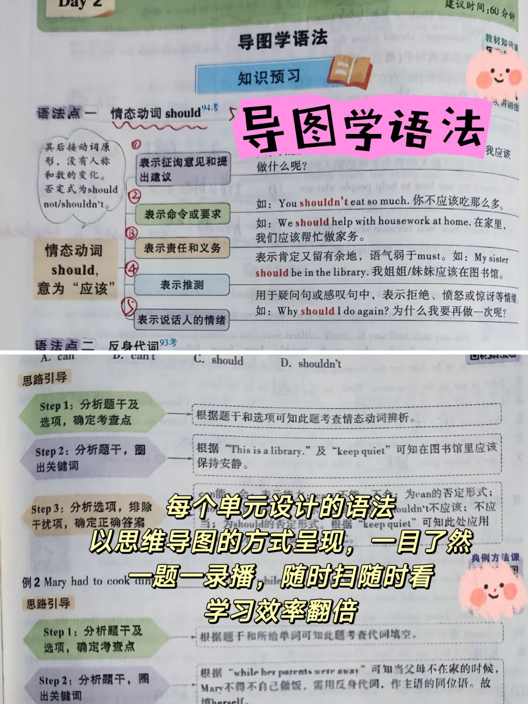 每个单元涉及的语法,以思维导图的方式呈现,一目了然。一题一录播,随时扫随时看,省了大几千去外面上,学习成果也很明显!