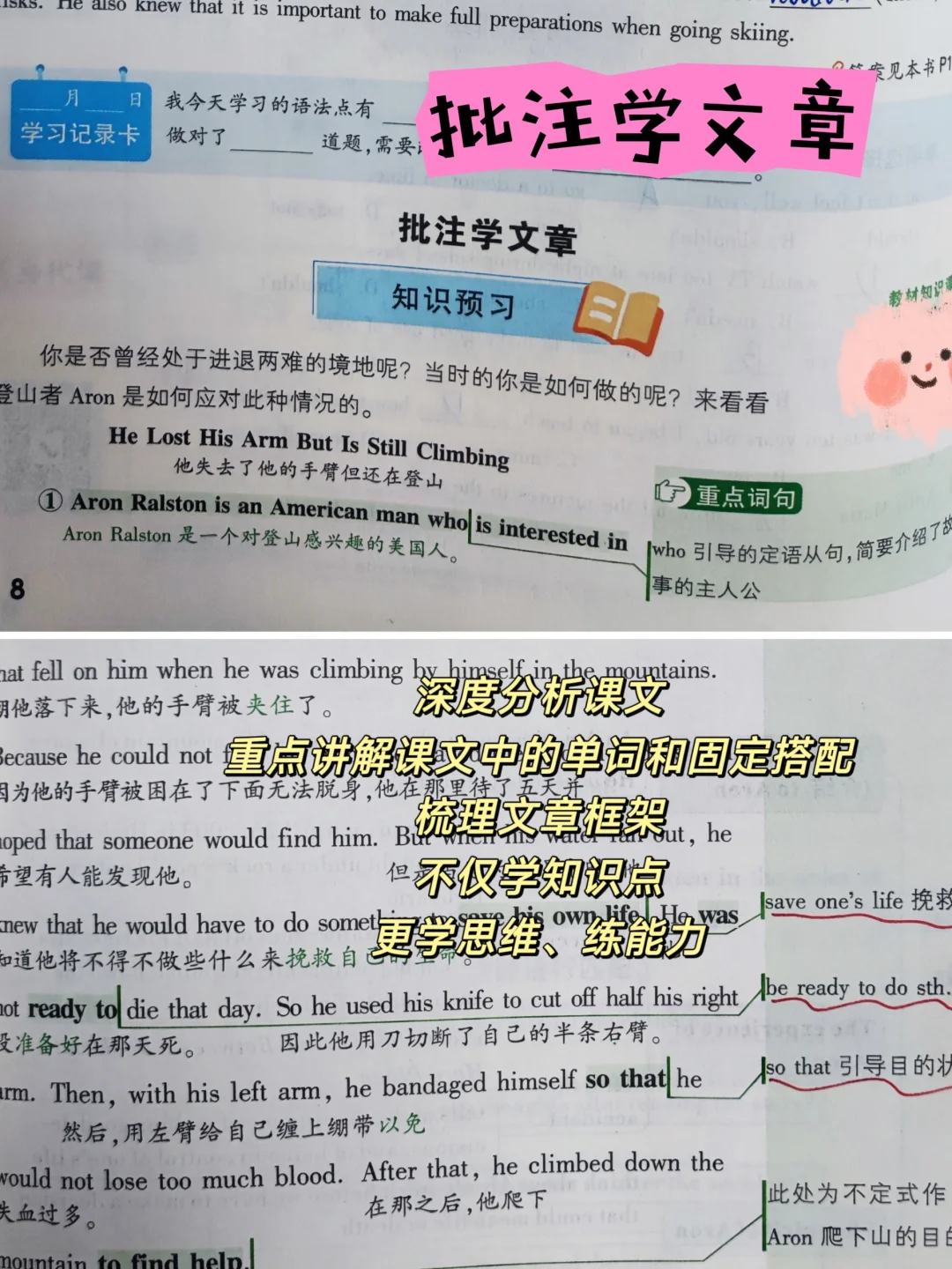 深度分析课文,重点讲解课文中的单词和固定搭配,梳理文章框架,不仅学知识点,更学思维、练能力。
