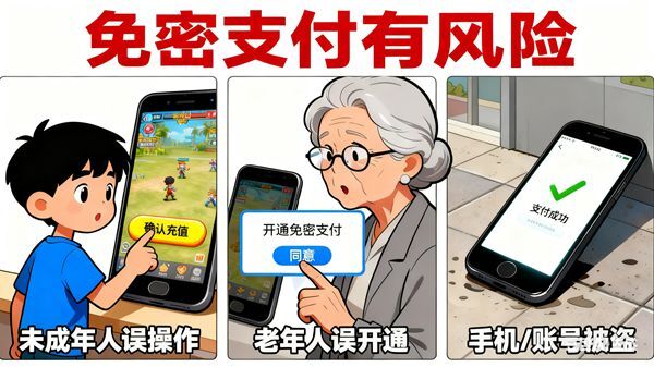 但“无感消费”在方便之余,也伴随一些糟心事。有家长发现孩子没经过同意,就在电商、游戏平台用免密付了钱;还有老人操作不熟练,误点开通免密,钱被扣了都不知道。更让人担心的是,如果手机丢了或者账号被盗,别人能直接刷走你的钱,二次验证都没有,想想都后怕。
