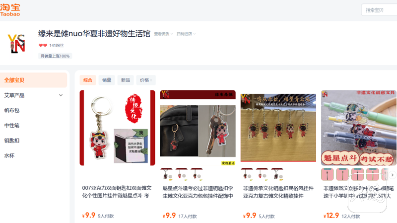 汪娟介绍,她们主要是围绕傩文化打造日常化产品,将傩戏中的面具、符号、纹样等元素,融入钥匙扣、中性笔、马克杯、帆布包等日常用品中。“目前这些产品在线上和线下都有售卖。线下我们在城区一些学校门口或是新西街等地方都有摊位,线上我们也开通了抖音小店和淘宝店铺,总体来看这些产品都很受年轻人欢迎。截止目前,线上线下的总销量已有近2000单。”