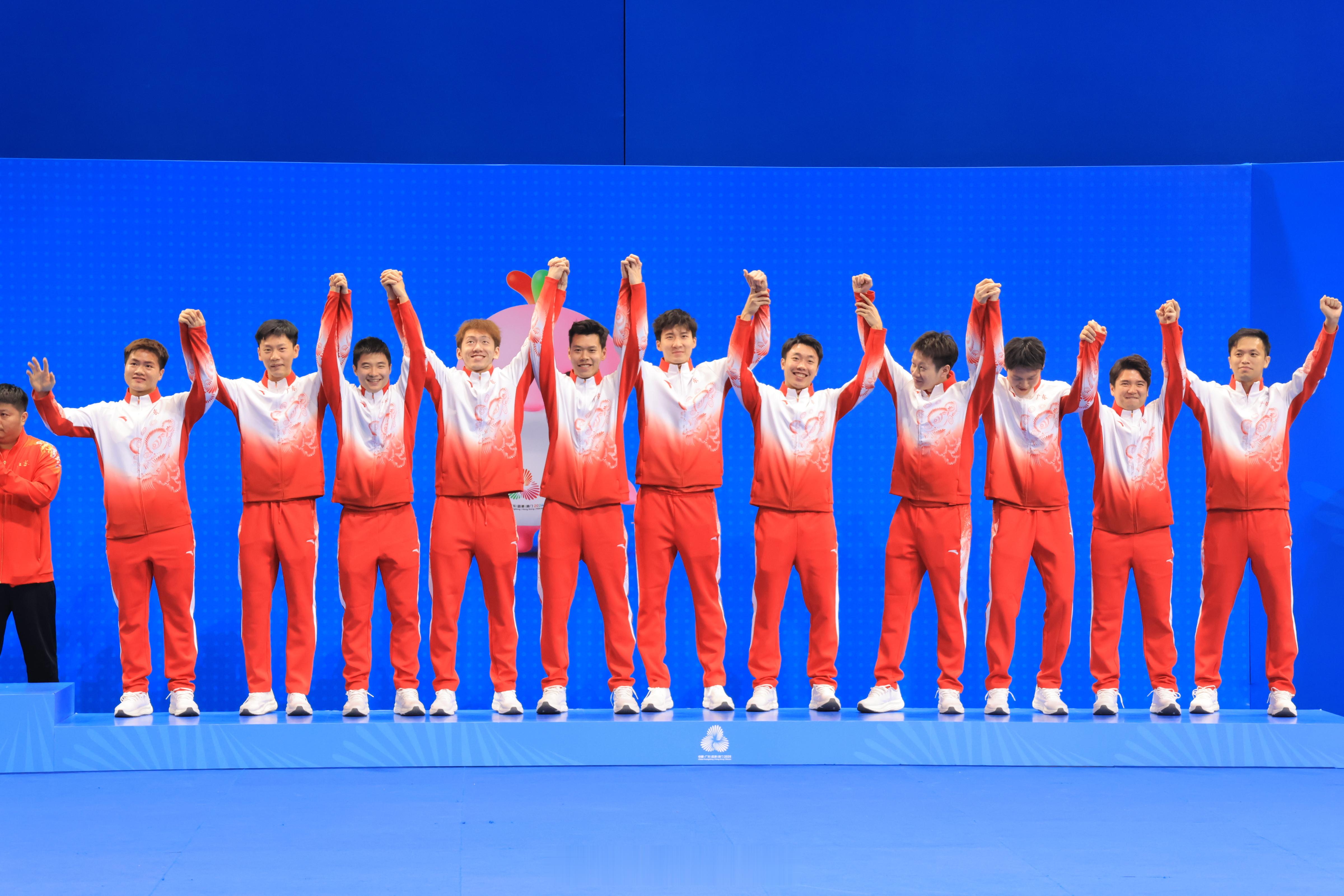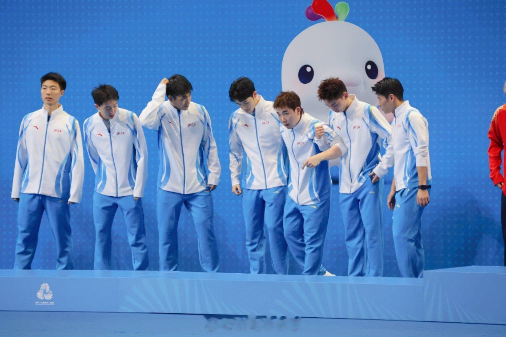他们就这么手牵着手,一起登上领奖台还有搀扶着受伤的队友上去,共享荣誉团体赛,就是