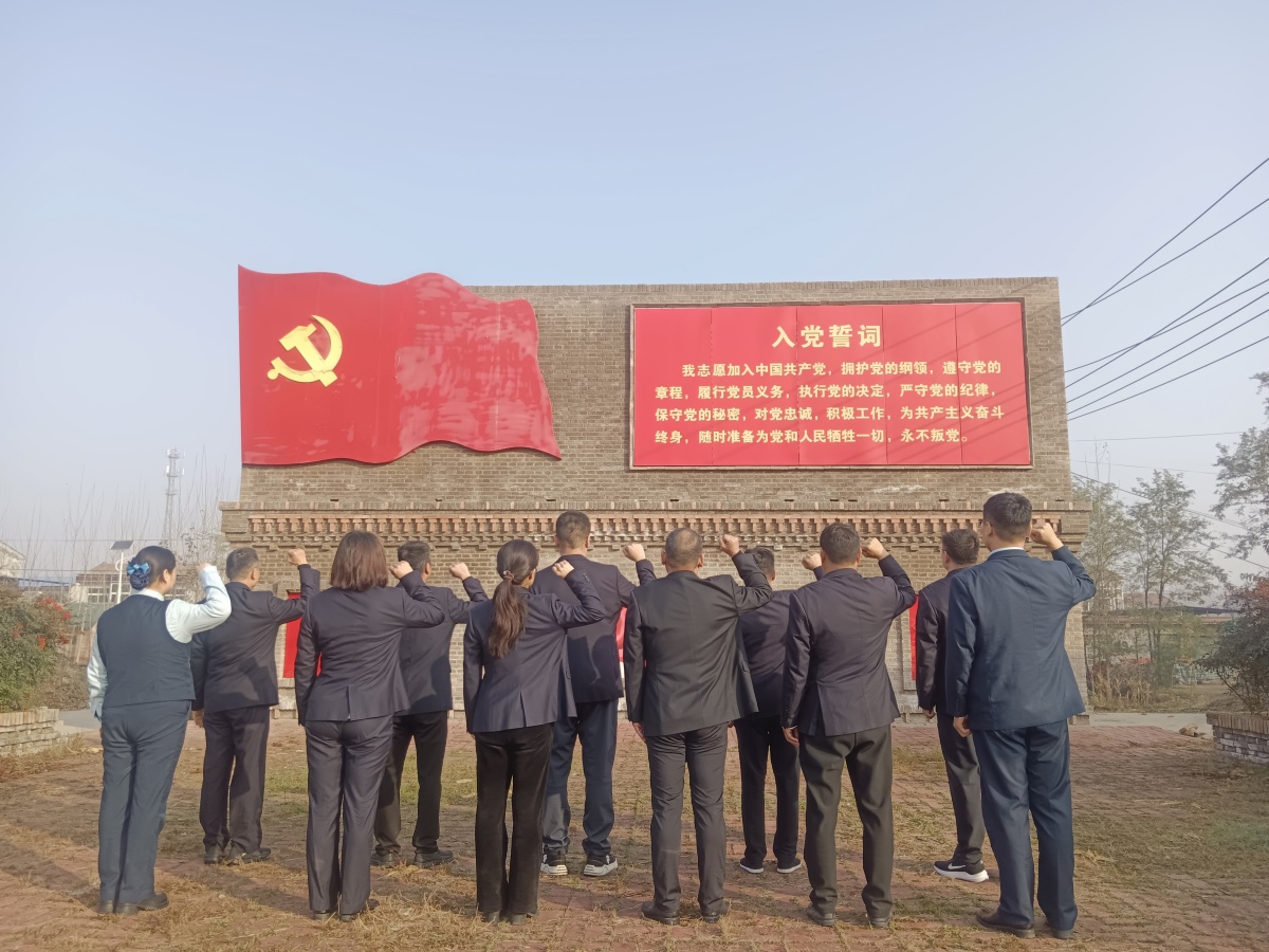 参观结束后,在葛庄村红色广场上,县邮政公司党支部书记带领全体党员佩戴党徽,面向鲜红的中国共产党党旗,举起右拳,庄严宣誓:“我志愿加入中国共产党,拥护党的纲领,遵守党的章程……”铿锵有力的誓言回荡在红色广场上空,也深深烙印在每一位党员的心中。
