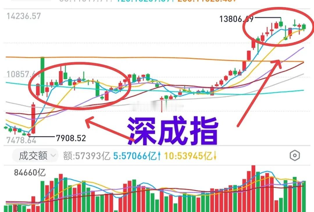 A股:看懂了深成指(图),就看懂了市场趋势。什么时候,深成指调整到位了,整个市场才有可能再起升势。1,上证与银行上证综指被银行架着走,对于整个市场来说并不“真实”。银行板块站起来,稳住了市场,这是银行板块的作用。但,对于多数投资者来说,银行板块的持续性上涨如同梦魇。因为银行板块的持续性上涨,会让市场失去活力。基本上每次银行板块上涨,个股表现就颓废,就是鲜活的例证。2,深成指深成指目前的状态,看看它的周线趋势就很清晰了。与去年10月份到12月份的走势比较,会发现目前深成指的走势是很相似的,呈现的是类三角形(收敛)格局。前一次,市场是经历过大幅度下跌(去年1月份),完成了筹码转换之后再次上行。这一次如果不出现意外利空,估计不会出现大幅度下跌。毕竟,管理层也强调过了——防止大起大落。这样一来,市场大概率会通过时间换空间的方式完成调整。10月份有一次较大幅度的下跌,深成指最低跌到了12677点。目前MA20周均线位于12327点,距离12677点并不远。理想的方式,市场在12700点上方拉锯(12700~12800点) ,等待MA20周均线走上来。比较伤人的走势,则是市场主动性下探,与MA20周均线汇合,或者说向MA20均线靠拢。比较上证综指和深成指的整体走势,深成指涨幅是落后于上证综指的。因为上证综指已经越过了2021年的高点,而深成指距离2021年的高点16293点还有3000点……个人观点,仅供参考,对错勿怪!理财有风险,投资需谨慎!