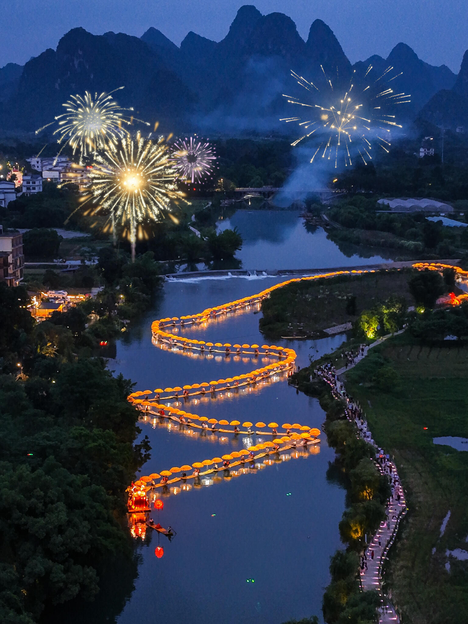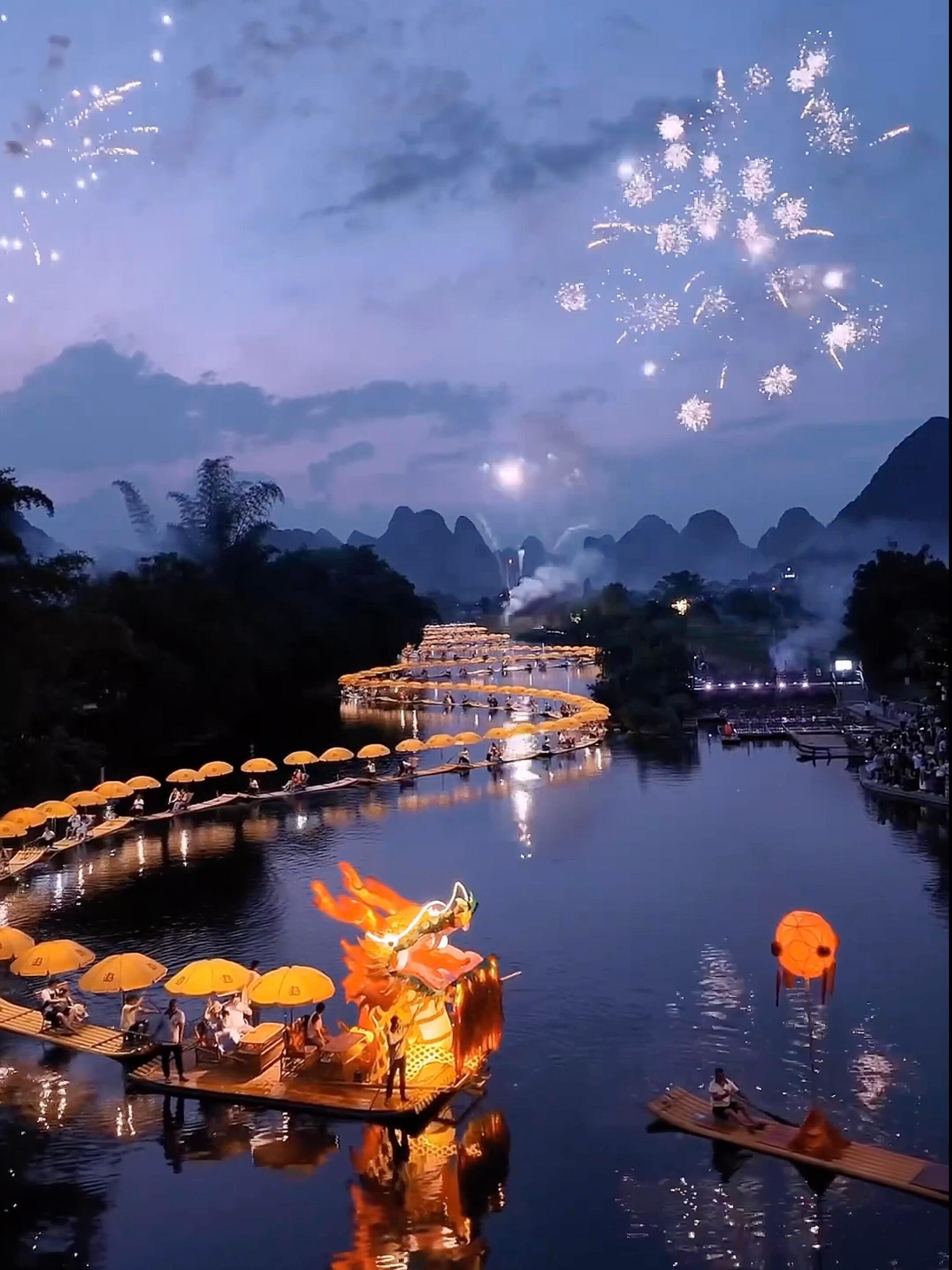 今天!阳朔杀疯了!!!!阳朔“巨龙巡游”!太震撼啦!!!!在桂林阳朔的朋友,大家一定要去看看啊!真的热泪盈眶🥹不愧山水甲天下👍中式美学yyds📍位置:遇龙桥码头(导航遇龙桥🕐时间:11月每周六 18:00开始(每个月份不一样 提前官方查询一下)🎫门票:免费(两岸免费看)桥上收费