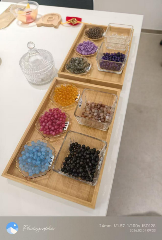 理论分享后,活动进入备受期待的水晶DIY实践环节。现场准备了丰富多样的天然水晶,以及制作工具。在陈靖韬及银行负责人的细心指导下,来宾们依据刚刚学到的知识,或为自己挑选契合星座特质的水晶,或为家人朋友精心搭配组合,沉浸于穿制、设计专属手链、吊坠或摆件的过程中。现场氛围热烈而专注,金融精英们暂时放下数据与图表,在指尖与天然矿石的触碰中,感受宁静与创造的愉悦。