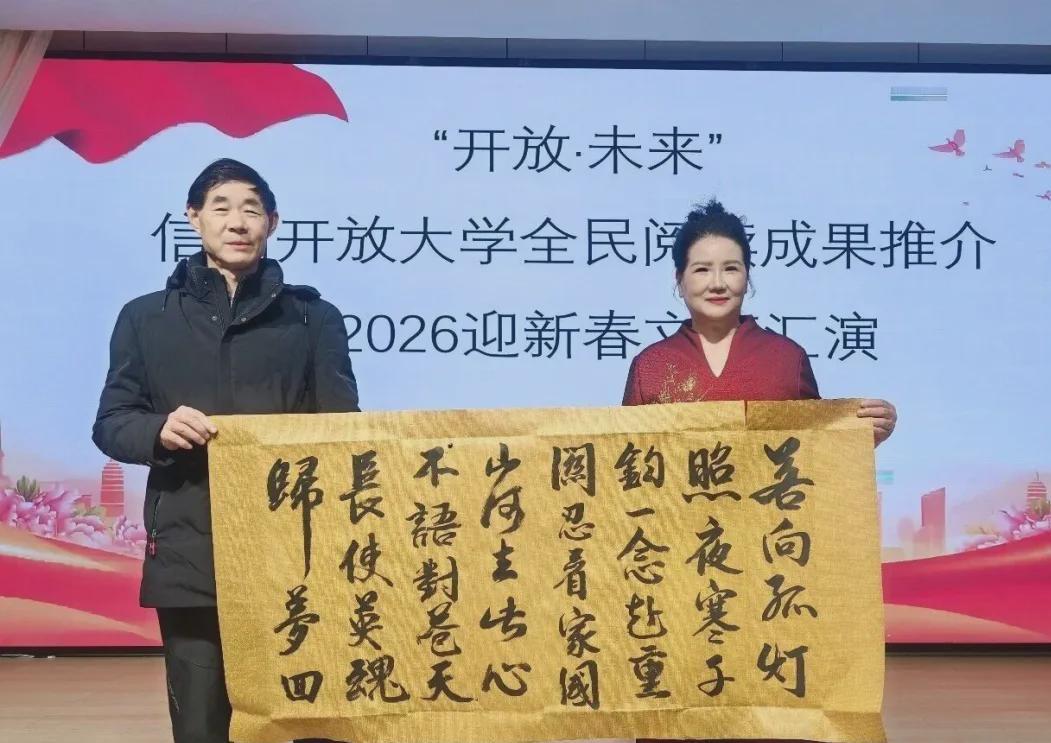 瑞雪迎新,书声润城。为集中展示信阳市全民阅读丰硕成果,弘扬中华优秀传统文化,日前,信阳市教育体育局、信阳开放大学联合涓涓细语团队主办“全民阅读成果推介暨2026迎元旦文艺汇演”。活动以“以声为媒、以情为桥”的理念,为现场观众呈现了一场兼具文化深度与节日温情的视听盛宴。