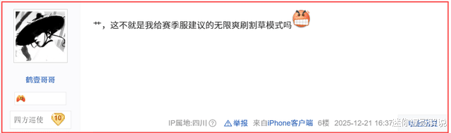 而另一派玩家,则担心“装备全靠刷”的规则下,游戏中优秀的刷怪资源点会被工作室垄断。不过也有玩家表示,就喜欢工作室来刷,大号打不过工作室还是打不过,反正都是杀人爆装备,肯定捡菜的杀。