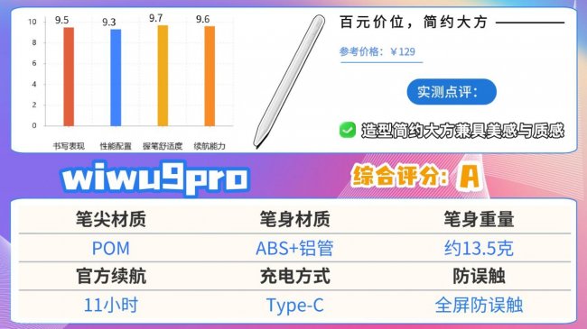 这款电容笔只需将笔尖轻按屏幕并保持约三秒,就能快速唤醒设备,而且笔尖经过特殊工艺打磨优化,书写时能有效压制笔尖与屏幕的摩擦杂音,避免产生刺耳声响,兼顾书写体验与使用静谧性。防误触性能同样值得肯定,用户将手掌自然放置在屏幕上,设备系统也能精准区分笔尖输入与手掌触碰,有效规避不必要的误操作。充电与续航表现也十分出色,配备通用性极强的Type-C接口,无仅需半小时左右就能完成满电补给,满电后可连续使用近9小时,轻松覆盖一整天的学习、办公等基础使用需求。唯一需要留意的是,它的定价略高于市面上同档位的其他产品,更适合预算相对充裕的用户选择。