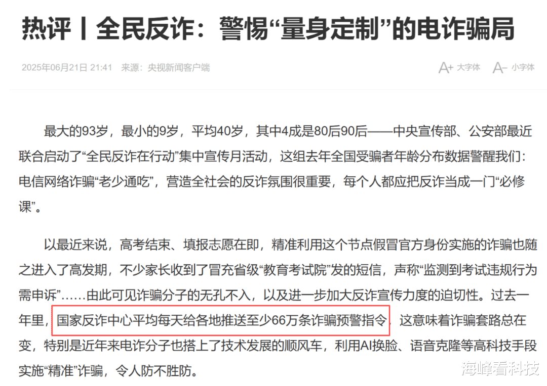 今天,“海峰看科技”结合运营商反诈成果与自身探访经历,和大家聊聊通信行业的反诈攻坚战。