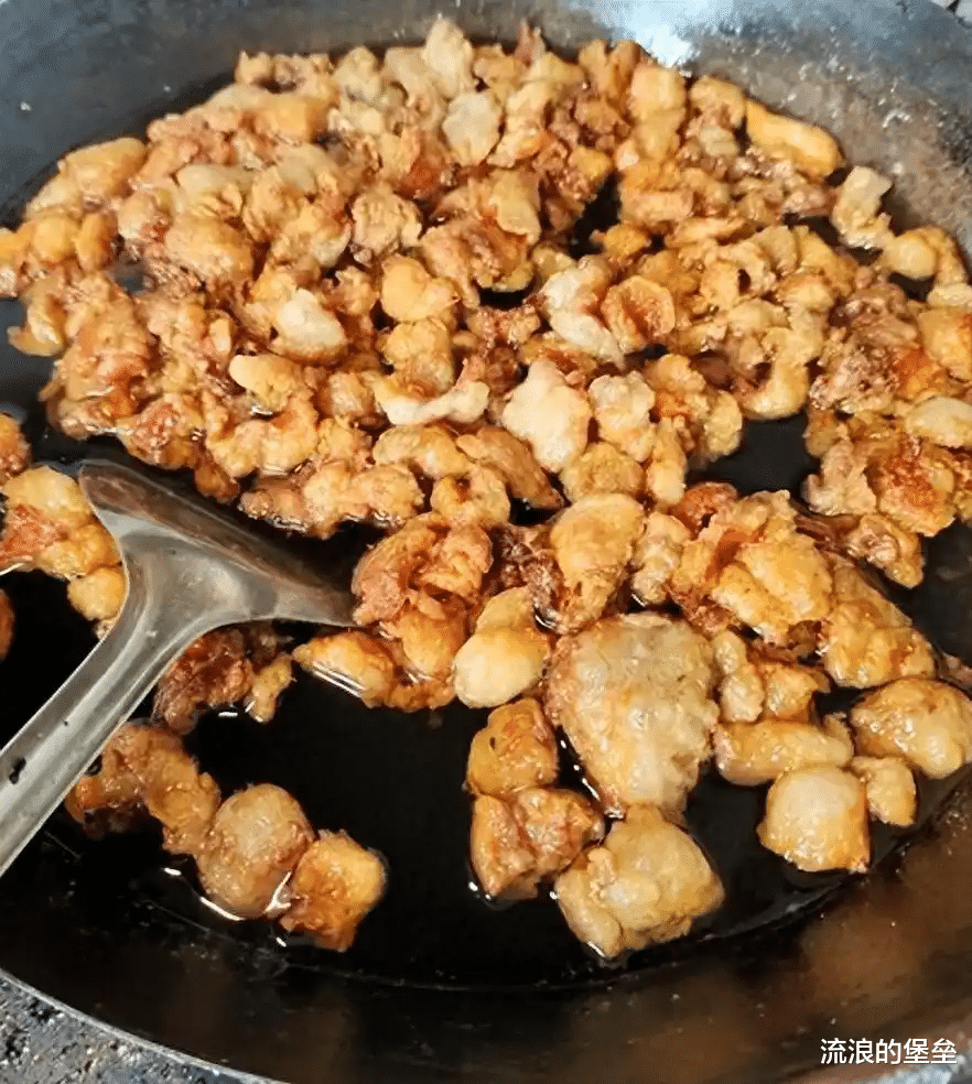 第二种就是油梭子,为数不多的好吃的零食, 家里面的五花肉有的时候怕坏掉,就会做油梭子,做菜的时候还可以再放,毕竟以前的时候,冰箱并没有那么普及,夏天吃西瓜都是放在菜地里的,或者是水井里,而且那样放置的,是最凉的!