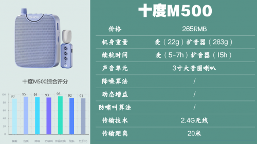 Top4:十度M500无线领夹扩音器推荐指数:★★★☆☆