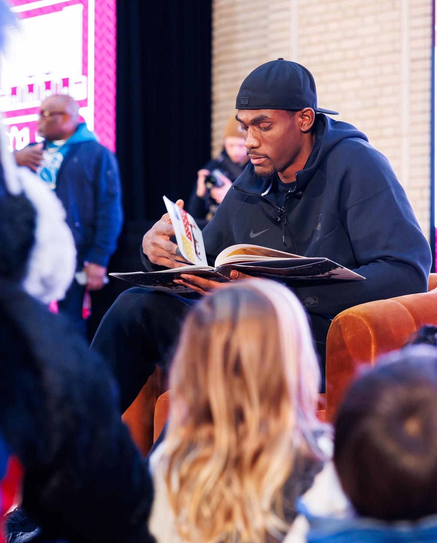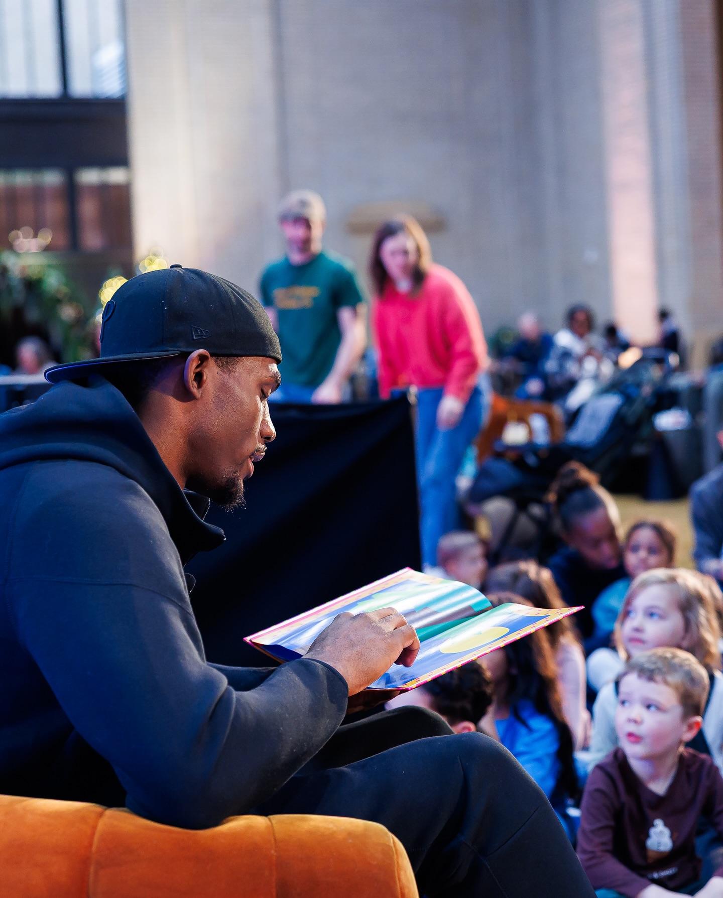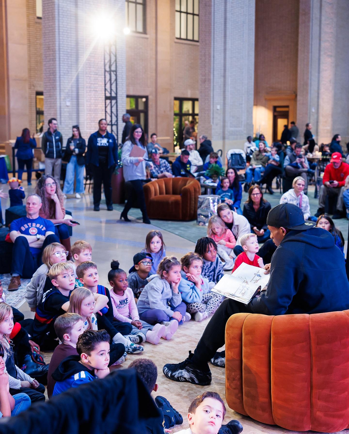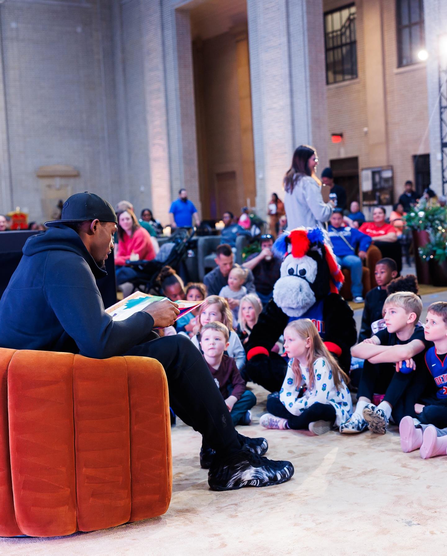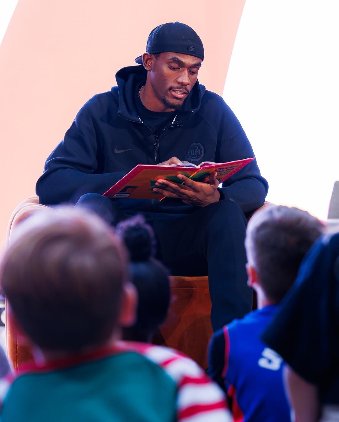 杰伦-杜伦参加为孩子讲故事的活动,活塞官方晒出现场照