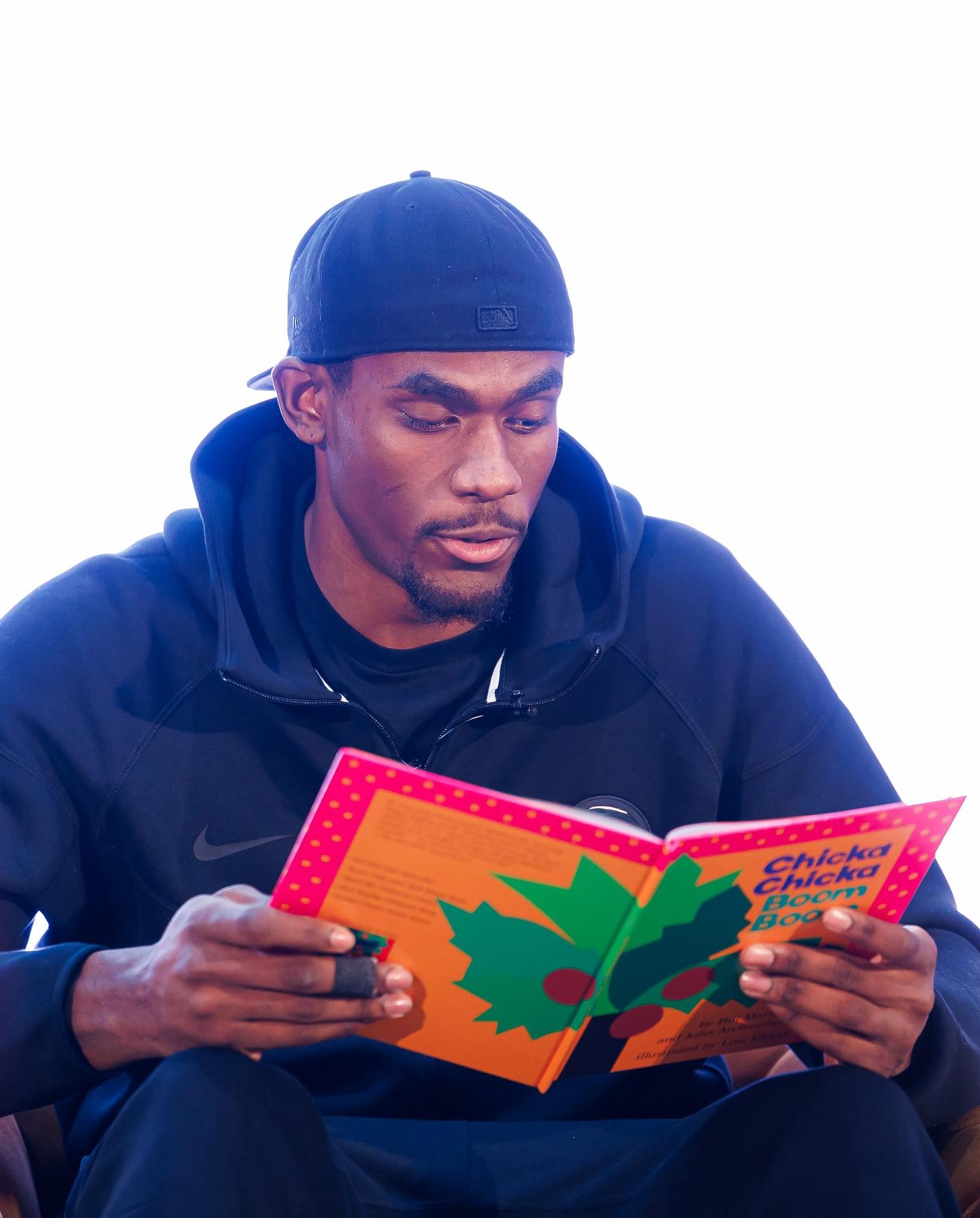 “杰伦-杜伦参加为孩子讲故事的活动!为当地青少年朗读故事,以激发他们对书籍的热爱并促进儿童的识字能力。”活塞官方附文道。