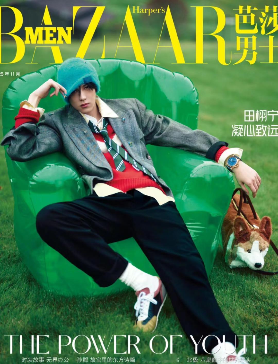 田栩宁芭莎男士解锁一线男刊,首位实体三封田栩宁 x芭莎男士十一月刊封面,身穿Fe
