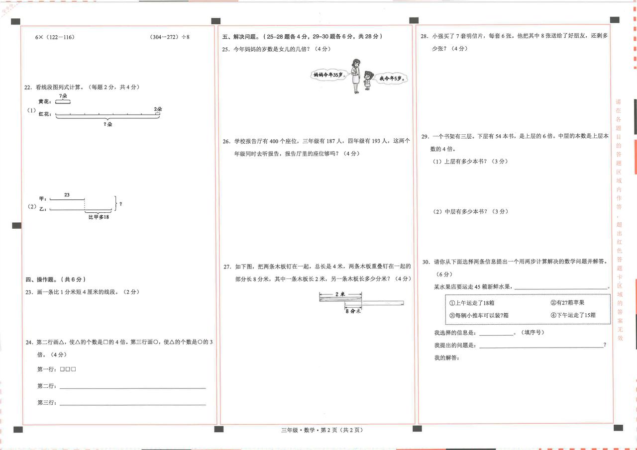 2025秋最新人教版数学三年级上册期中阶段练习