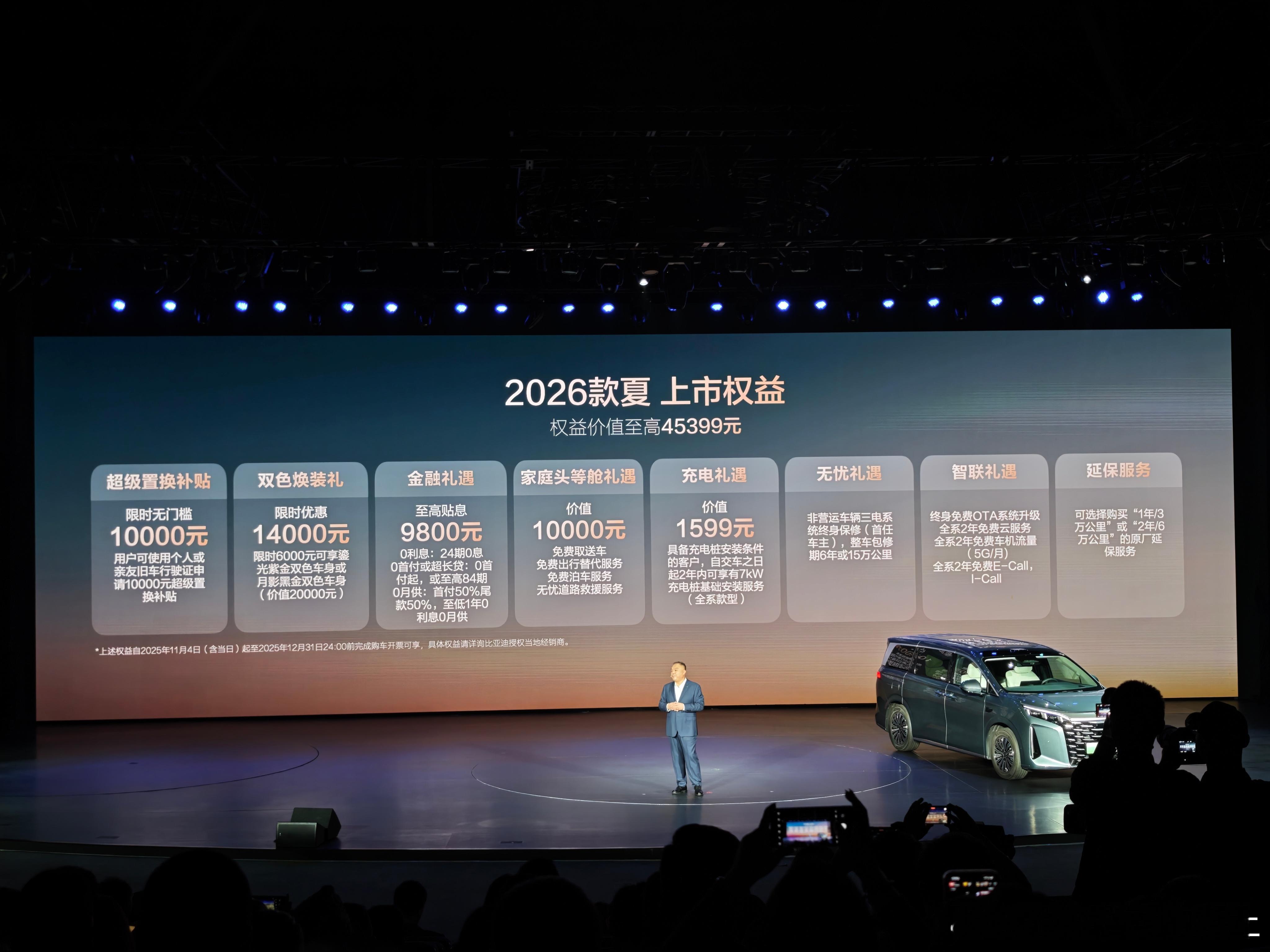 中大型MPV 2026款这次的升级很有呢诚意,智能生态可联动家里各种生态用品,号称“让生活更美的”,手车互联具备更高可玩性,车载冷暖冰箱上车,首搭DiSound迪声音响、魔方全景声打造沉浸式观影空间,最好玩的是第三排的可拆卸的户外音箱在露营时可太实用了。最没想到的是冠军家庭田亮&叶一茜夫妇还来到了现场