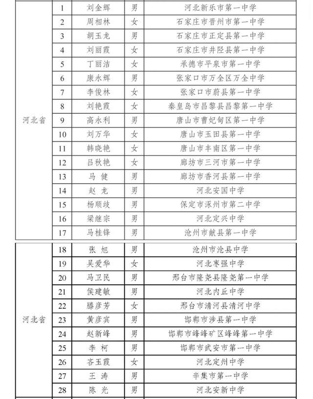 日前,教育部发布通知,经学校自主申报、省级教育行政部门审核公示、等额推荐、会议评议,确定首批全国县域普通高中头雁教师岗位计划入选教师600人。其中,张家口2人入选。