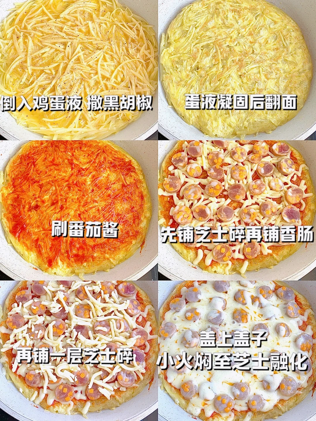 土豆、鸡蛋、番茄酱、芝士碎、香肠