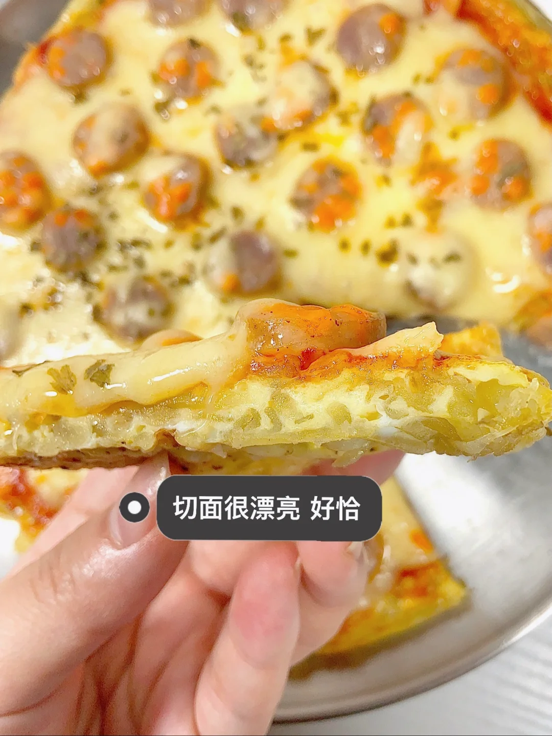 香香浓浓的土豆丝披萨🍕还能拉丝哦😯芝士味浓郁🧀土豆焦香🥔配上齿/物的香肠,绝了!冷鲜肉制作的,比一般的香肠好吃很多。大颗大颗的肉粒,鲜嫩多汁!芝士含量高,而且巨香浓!!了芝士爱好者的心头爱💗