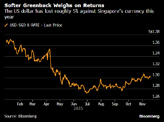 彭博美元指数今年以来已下跌近7%,而美元兑新加坡元走低约5%。尽管美国仍然是许多大型机构和资产管理公司首选的投资目的地,但美元的下跌已经侵蚀了非美元投资者的收益。