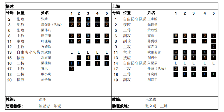五局比分为:福建29-27,28-26,15-25,17-25,18-16。
