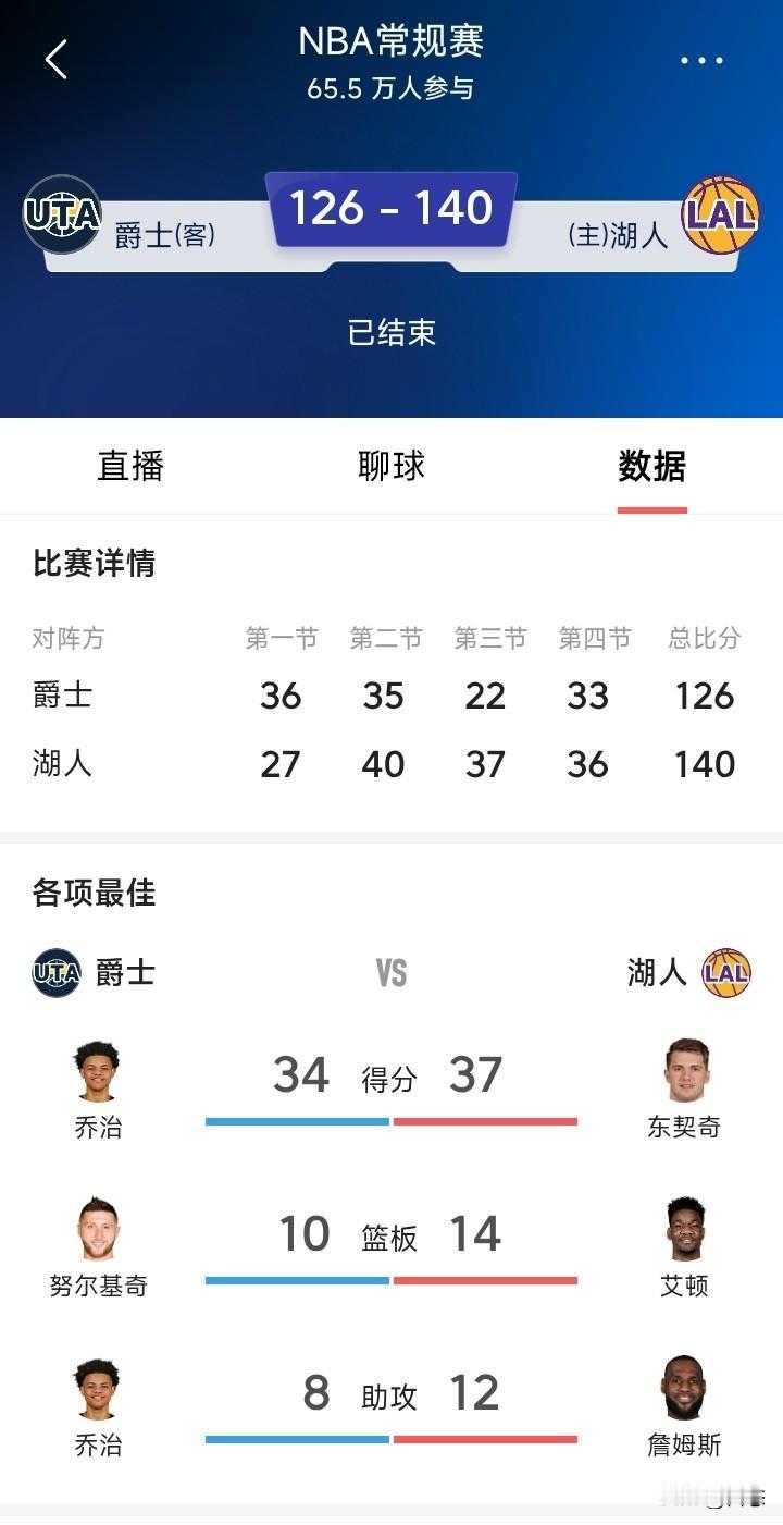 詹姆斯首秀,可以说吸引了大量球迷和媒体的关注。詹姆斯这个赛季第一次登场,打了29分钟,11+3+12的数据,可以说是中规中矩,一个40岁左右的人,还有这样的数据已经是天花板级别了。 不知道大家发现没有,詹姆斯投篮次数减少了很多,助攻却多了,个人估计,这个赛季可能会改变自己的位置了。 可以学学保罗做一个串联球队的队友。 你们怎么看詹姆斯还继续打呢?