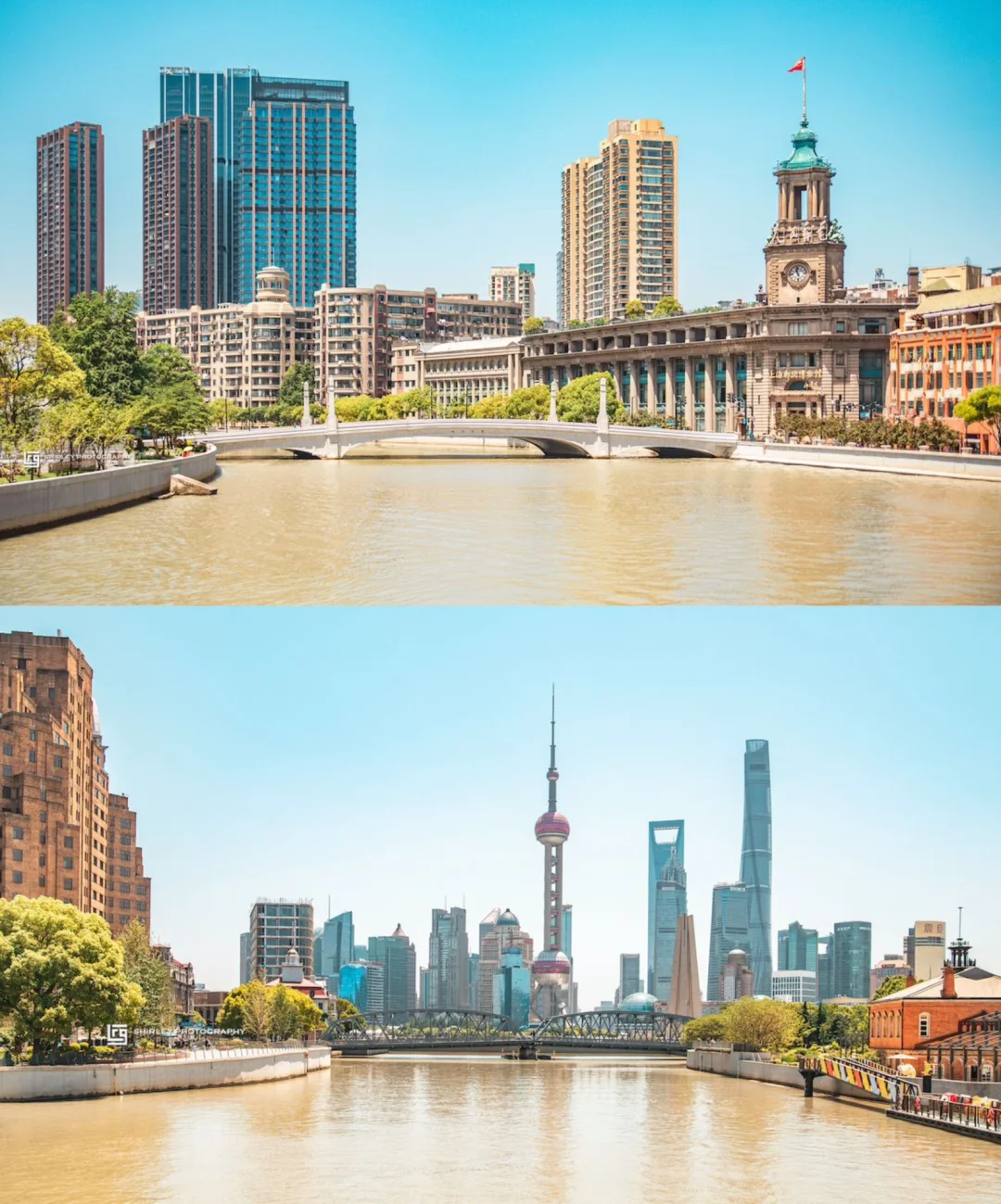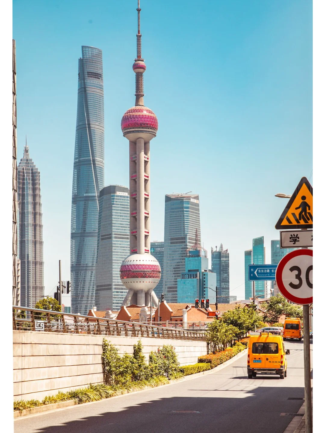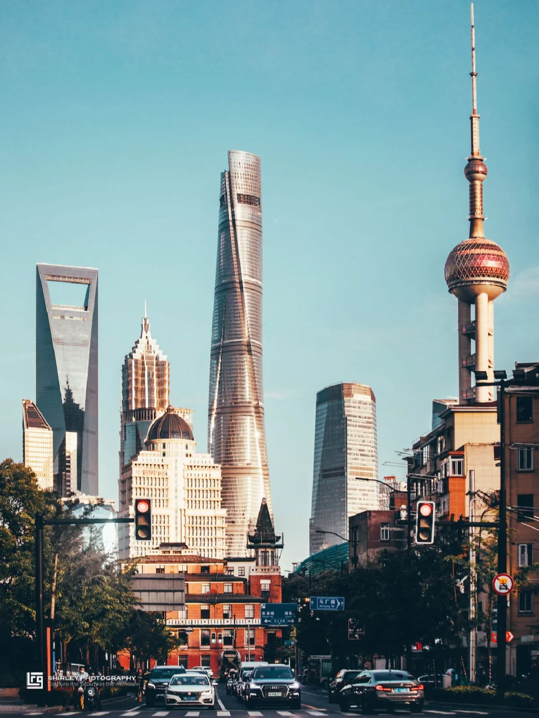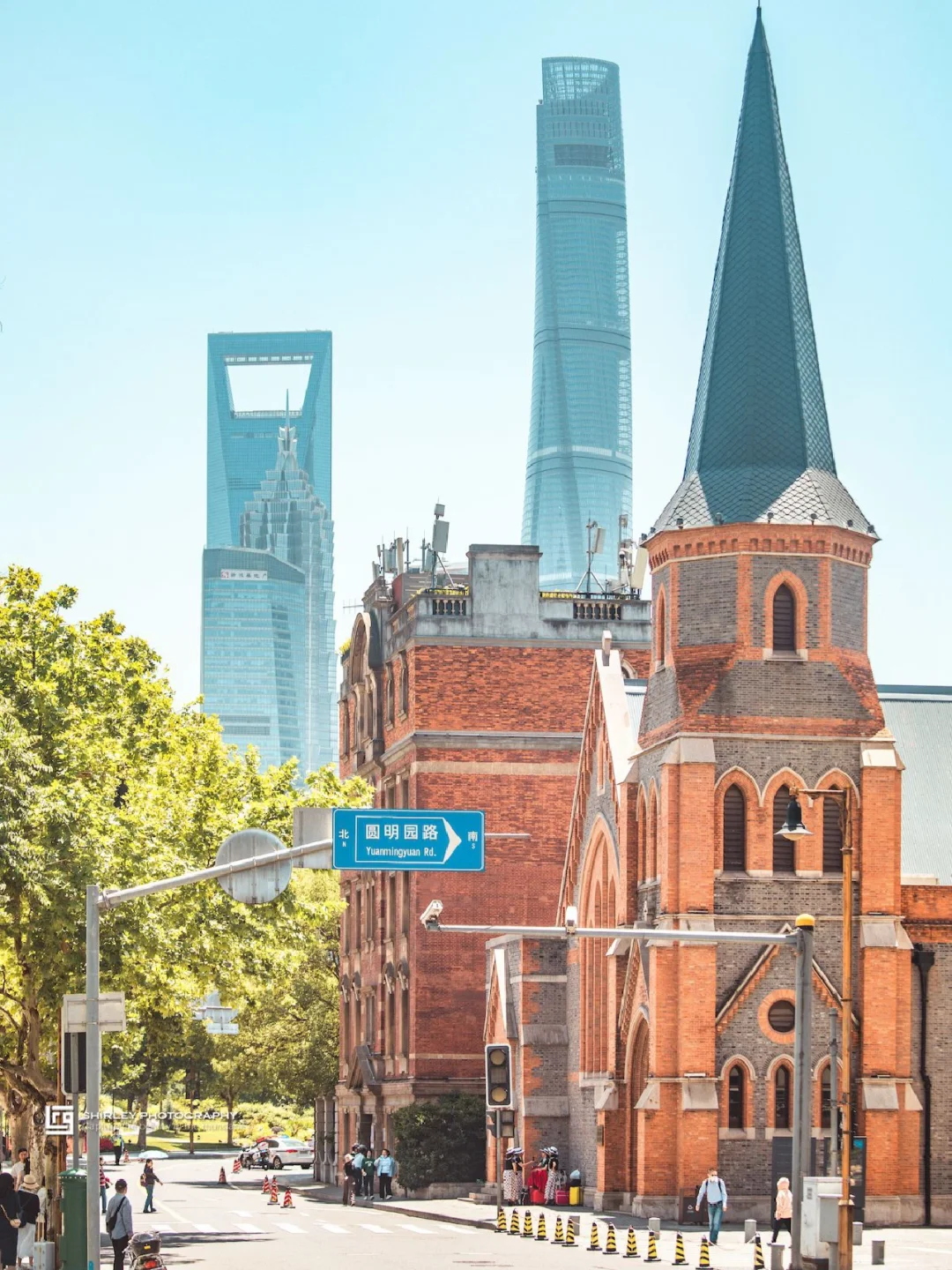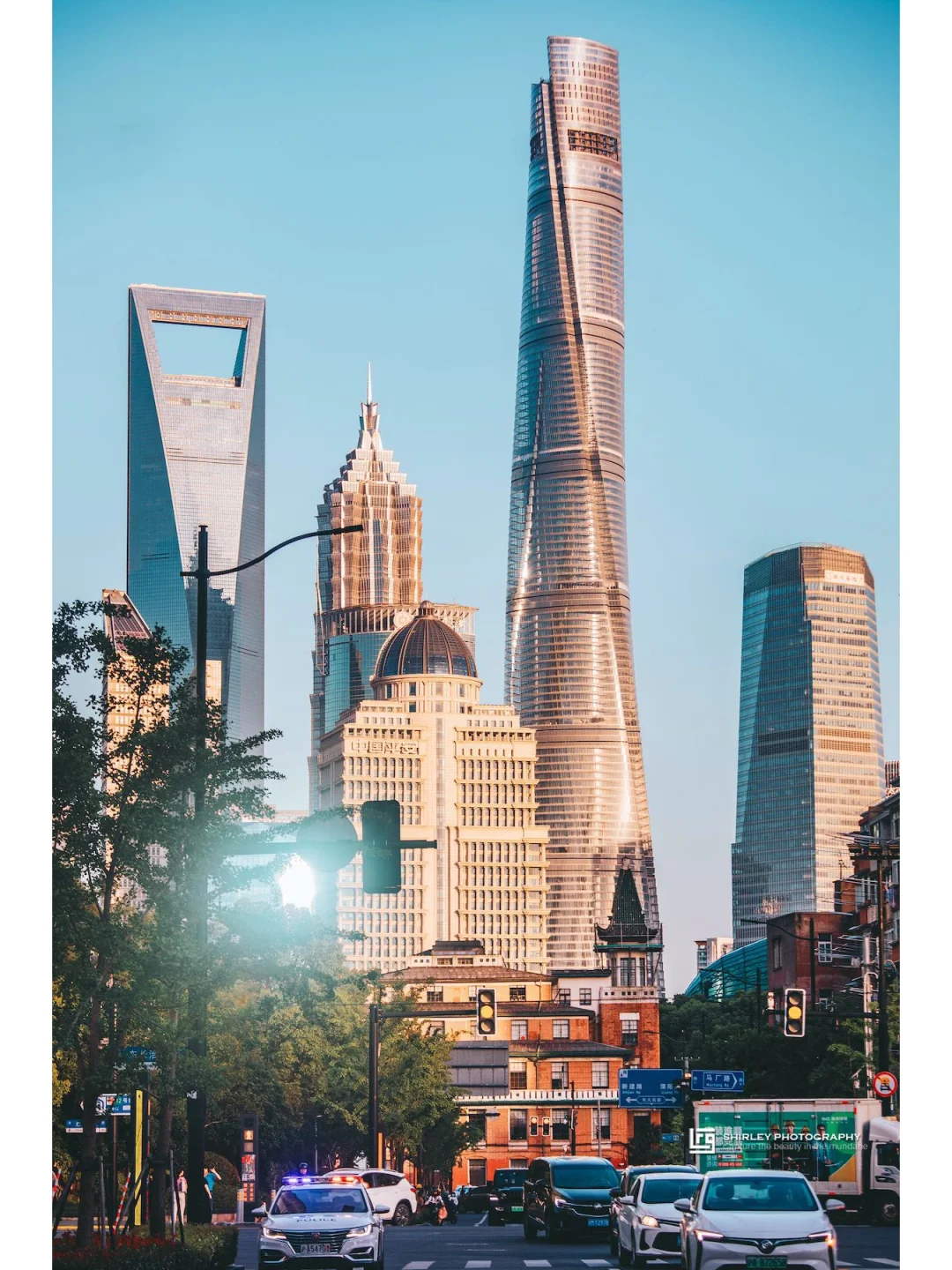 四件套密密实实地被框在了一起,非常魔幻,这里拍外滩万国建筑群的角度也很不错