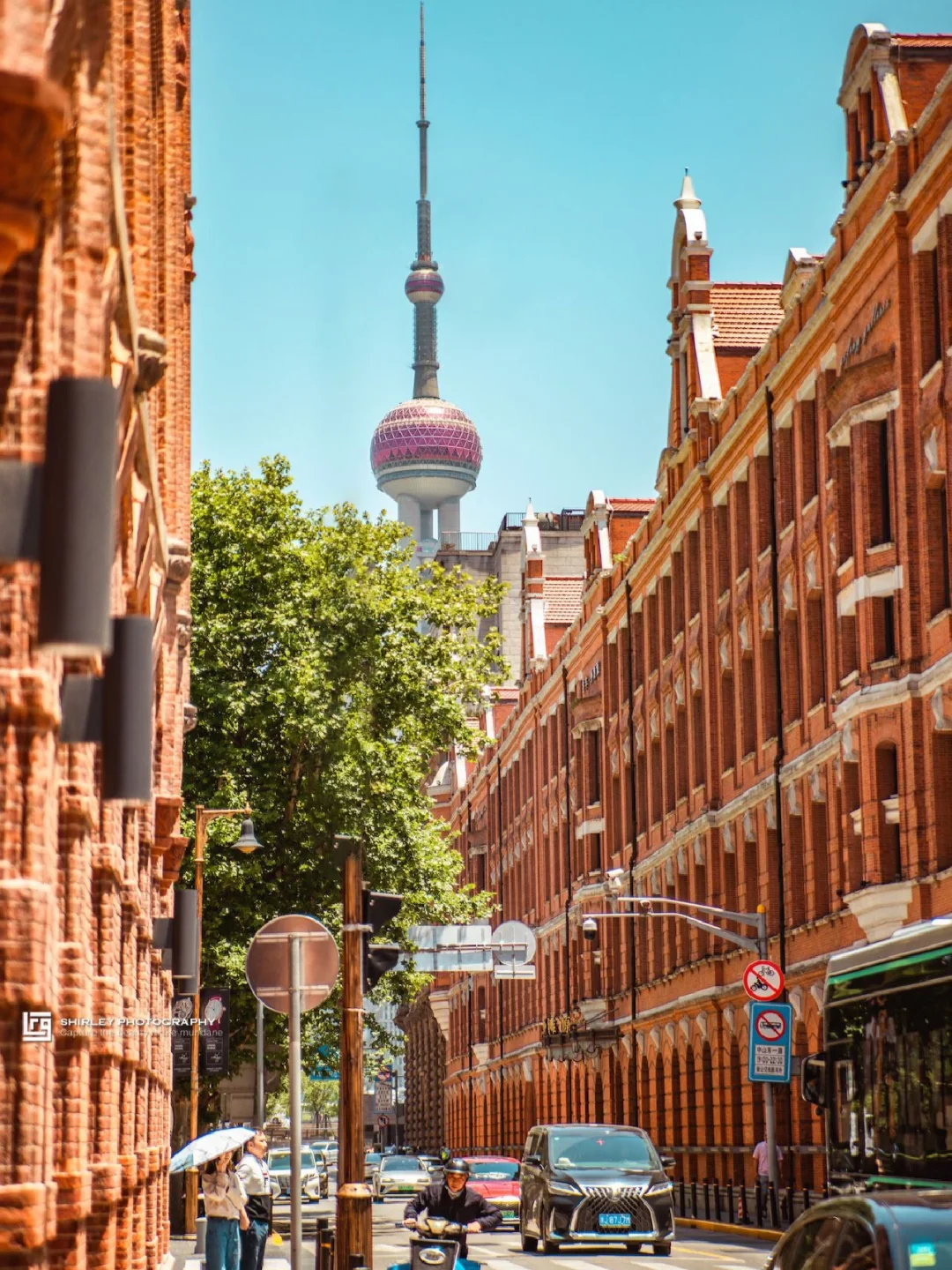 英式红砖建筑与东方明珠的组合