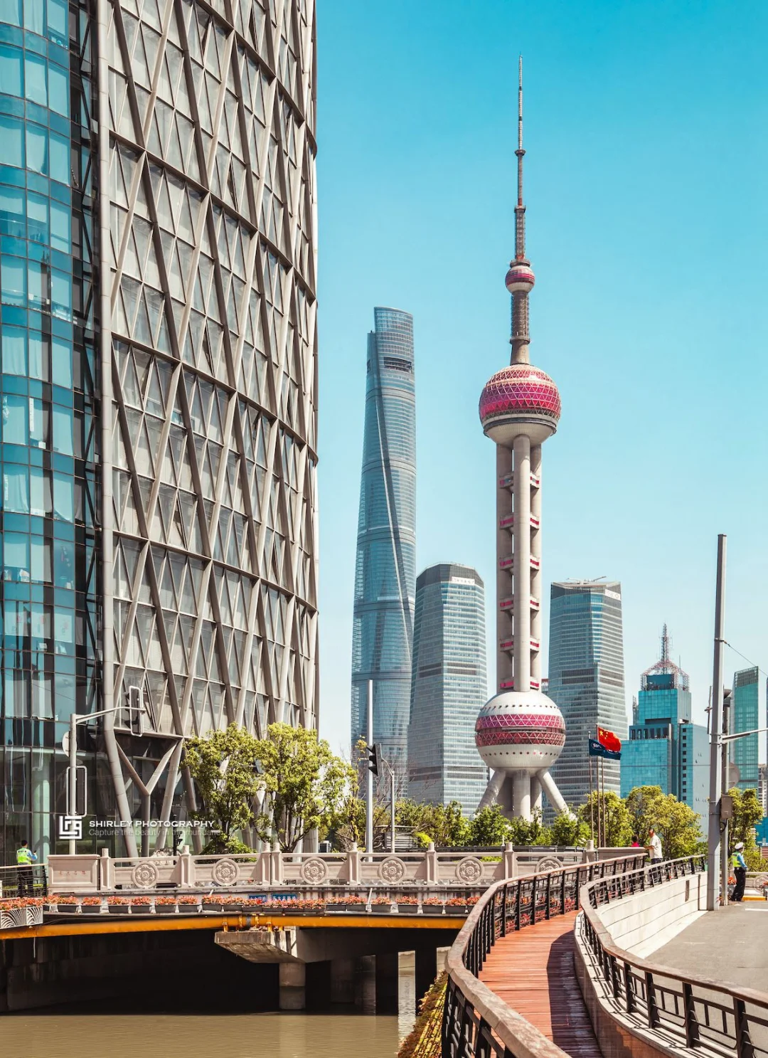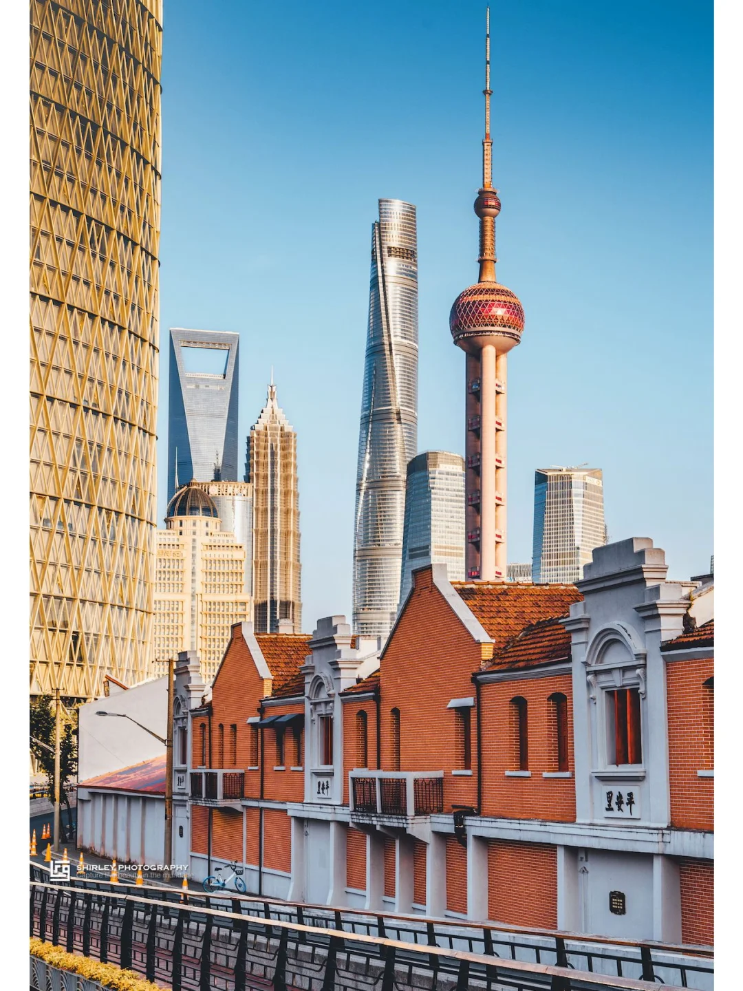 视野很棒的一座桥,远处是陆家嘴,右手边就是平安里的橙红色屋顶,又一幅新旧同框