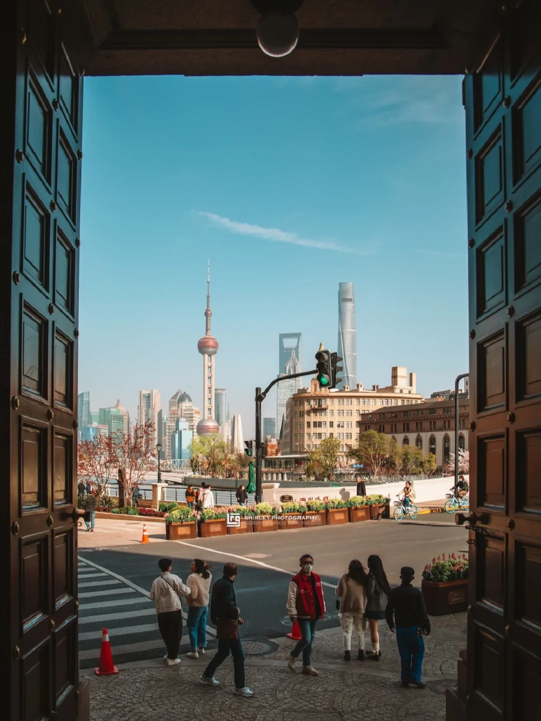 被称为上海之门,老建筑的大门恰好框进了陆家嘴四件套