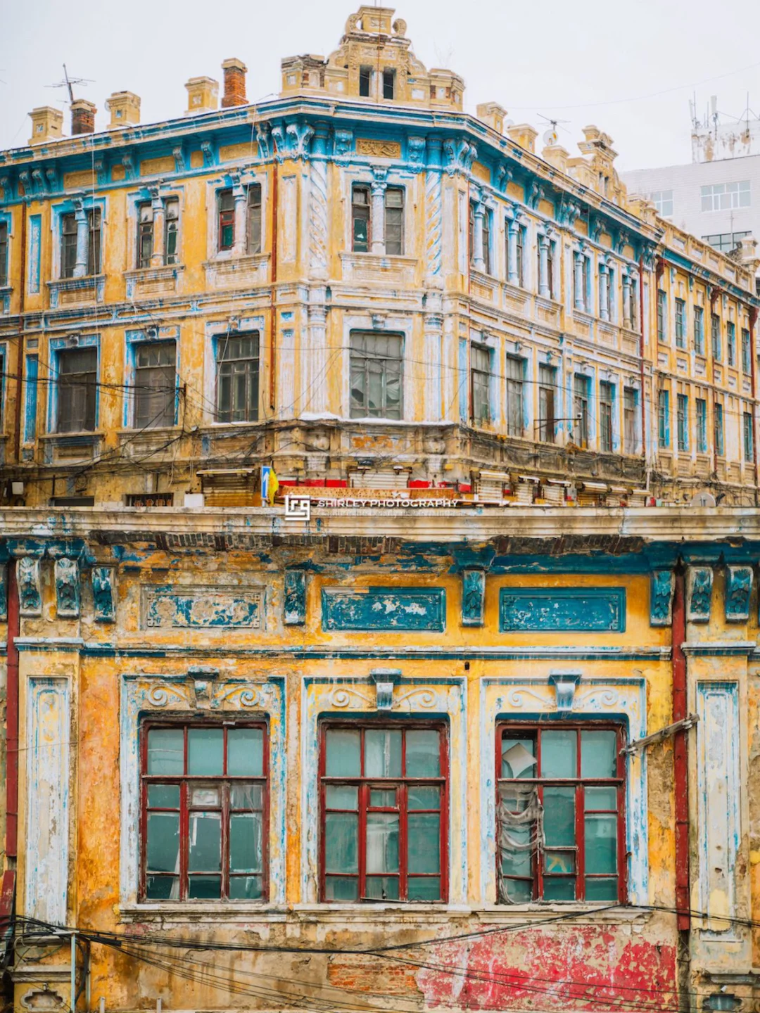 一栋三层楼的中华巴洛克式建筑,仍能看到装饰精巧的女儿墙,层叠的檐口角线;三层的窗间柱刻满了细密的条纹,华丽繁复。