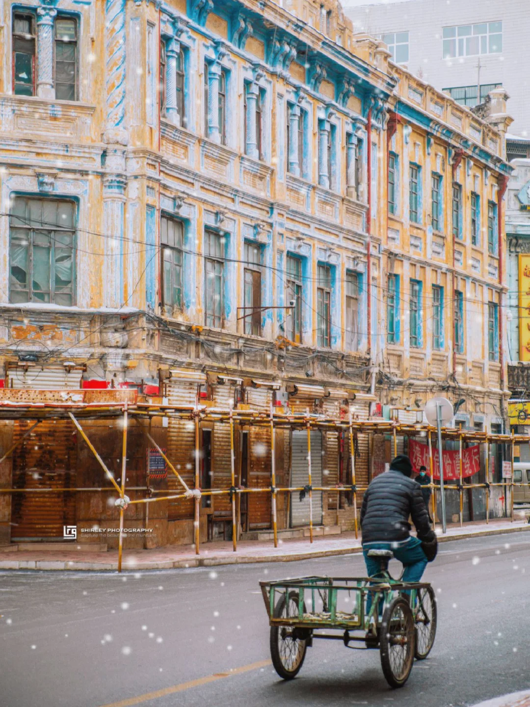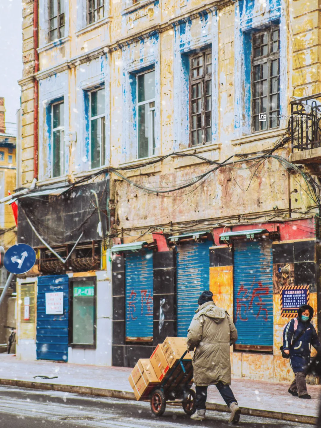 如果说中央大街是哈尔滨的A面,那么老道外就是哈尔滨的B面。尽管这片区域拥有大量风格独特的老建筑,可它的沧桑晦暗也超乎想象;如英雄垂暮,日薄西山,只留下一个时代的背影。