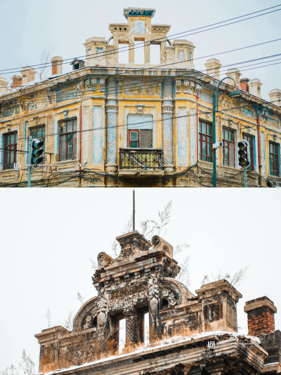 🔺他们复制起了道里那些华丽的欧式建筑,并在其中加以中式元素。于是巴洛克建筑的立面上出现了蝙蝠、石榴、金蟾、牡丹等传统中式图案。中华巴洛克,也就这么来了。