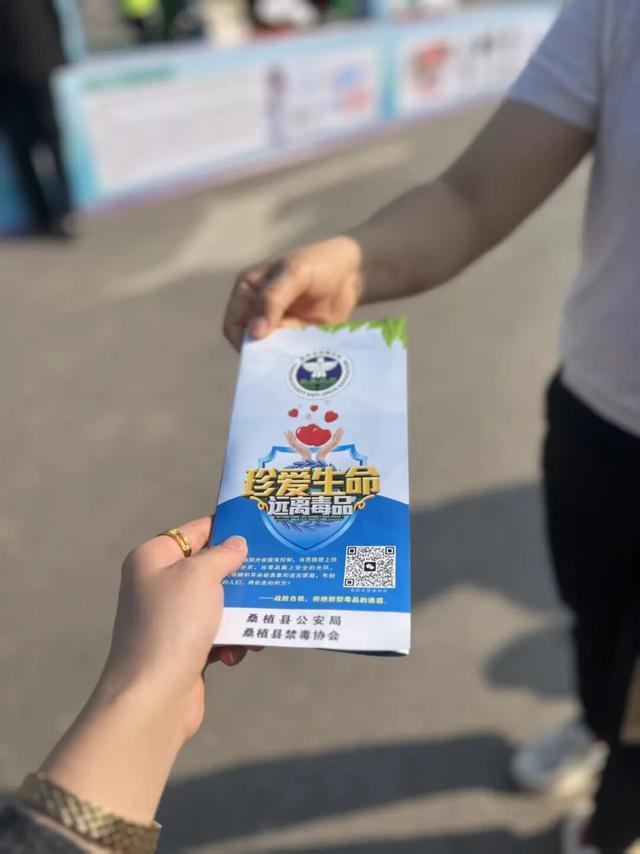 活动现场,红色氛围与法治元素相互交融。桑植县公安局与县禁毒协会的工作人员共同搭建宣传展台,向过往群众逐一发放禁毒、反电诈宣传单页四千多份。