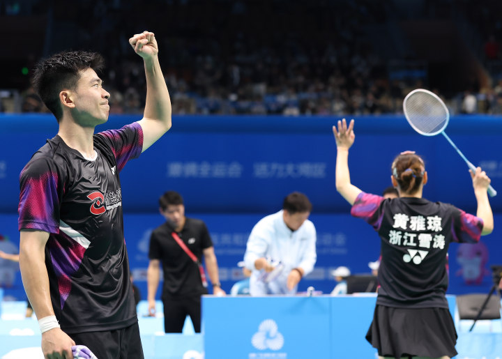11月20日,第十五届全运会羽毛球混双决赛,郑思维/黄雅琼迎战周志宏/魏雅欣。2比0,雅思获胜,如愿夺金!