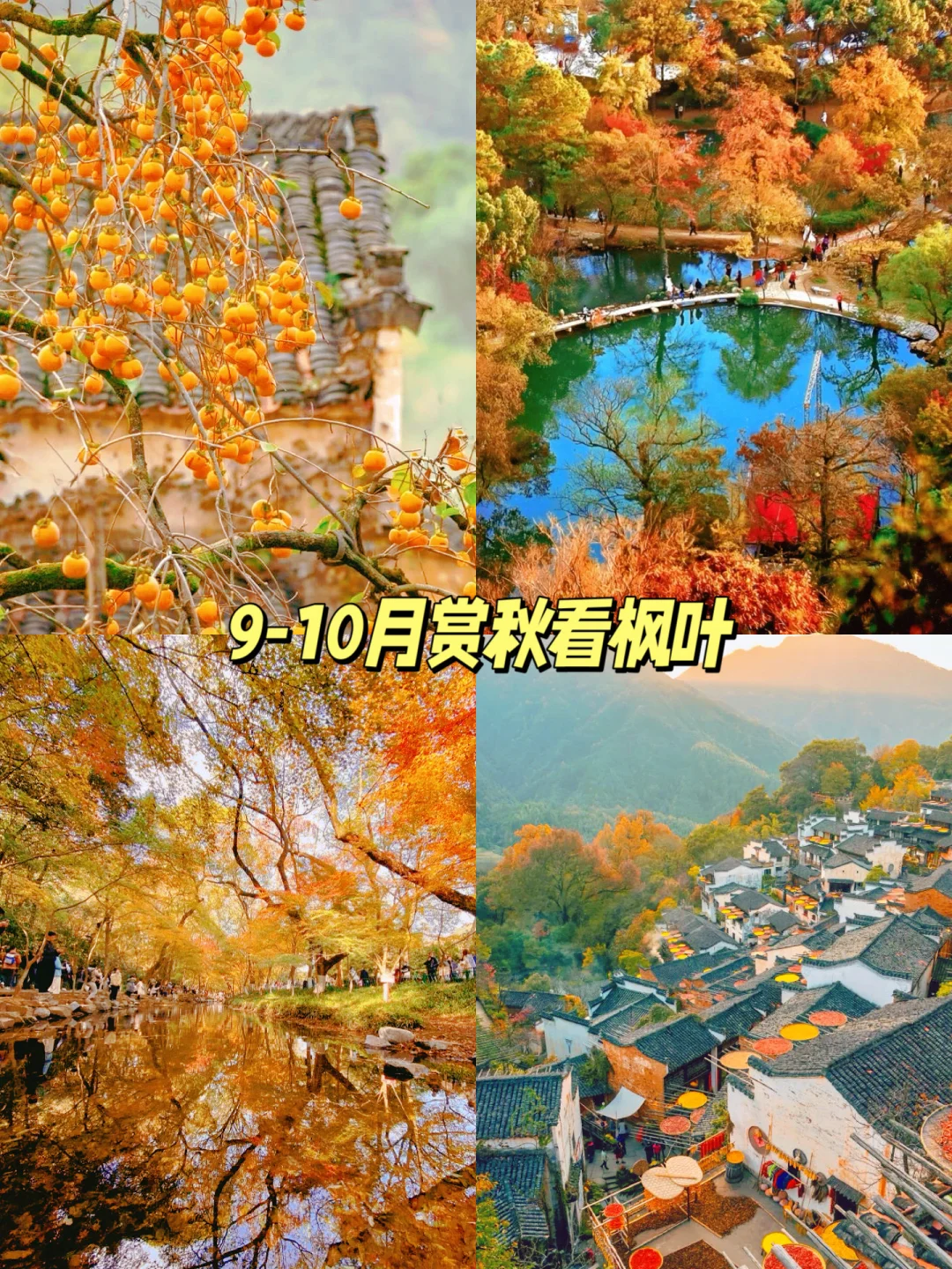 江西婺源晒秋、内蒙古阿尔山、额济纳旗胡杨林、腾冲银杏、新疆喀纳斯禾木、川西稻成亚丁、北京香山巴中光雾山、济南红叶谷、辽宁红叶