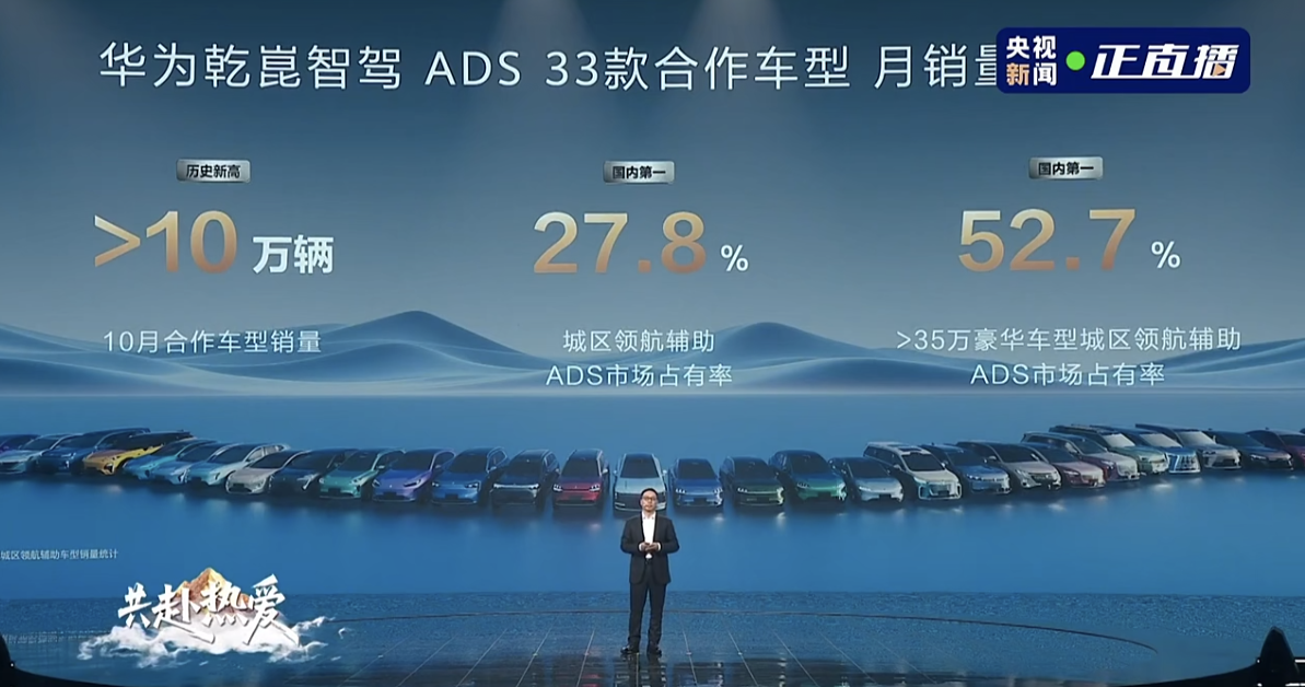 上证报中国证券网讯(记者俞立严时娜操子怡)11月20日,在华为乾崑生态大会上,华为智能汽车解决方案BUCEO靳玉志宣布,华为乾崑智驾ADS的33款合作车型月销量破10万辆,创历史新高。城市领航辅助市场占有率27.8%,超越第二、三名之和;35万以上豪华车型城区领航辅助市场占有率52.7%。